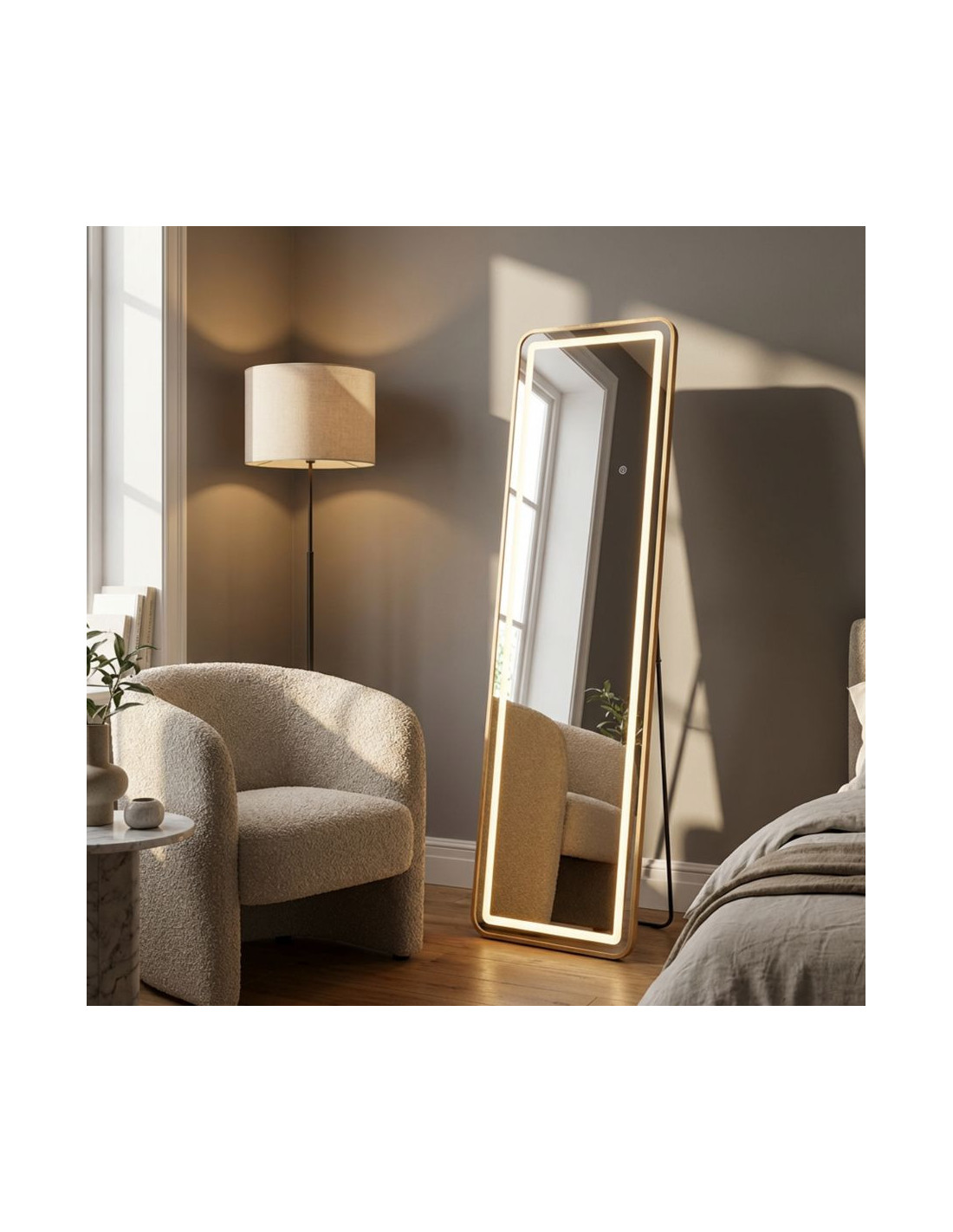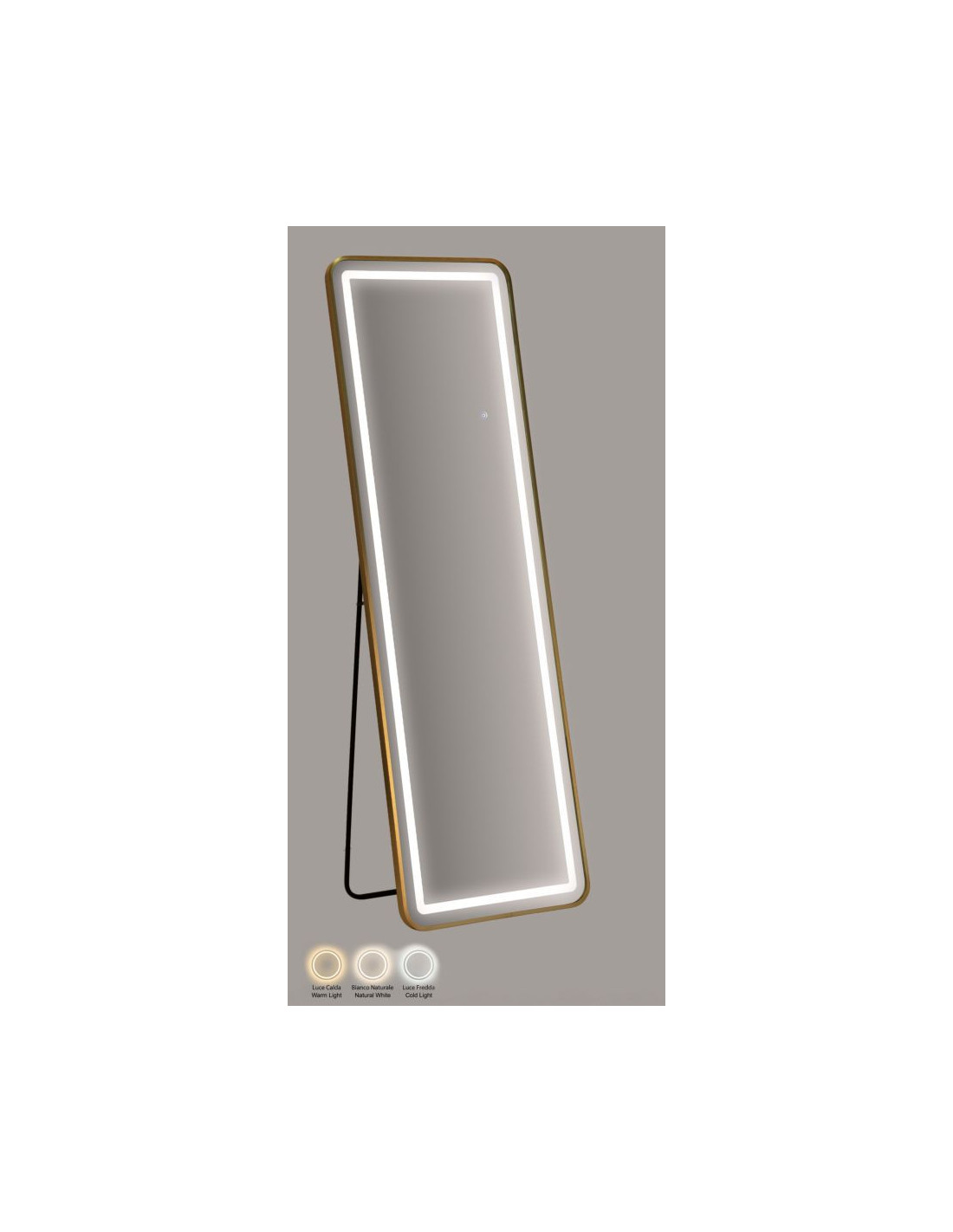 Grand Miroir sur pied lumineux LED Rectangulaire 50x160 Métal Doré Simple