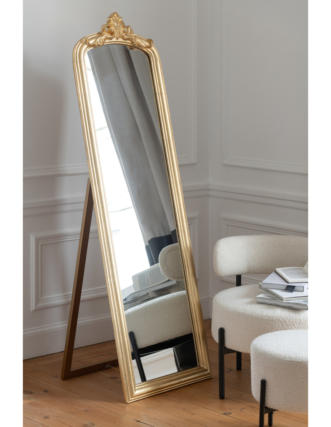 Grand Miroir sur pied modern chic Rectangulaire 56x180 en Bois Doré Emi - 7
