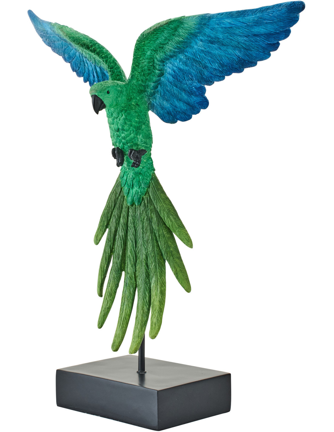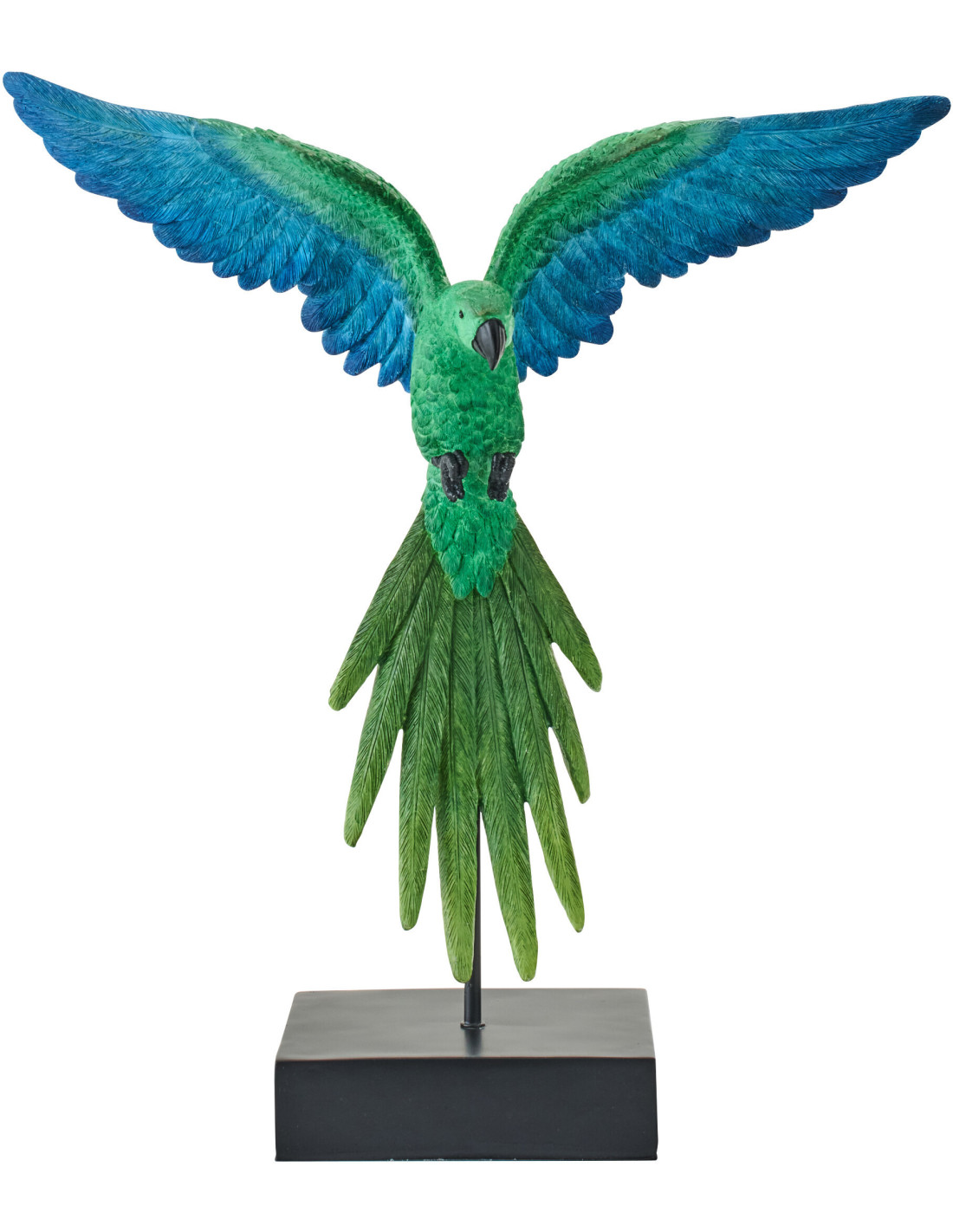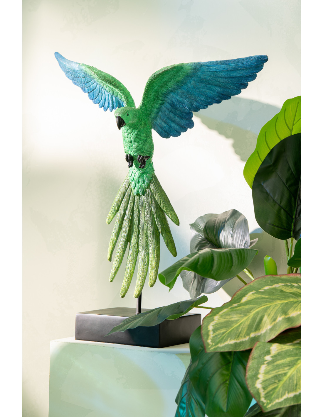 Grand Perroquet déco sur pied H 61 cm Résine Vert Bleu Métal Noir Maravel