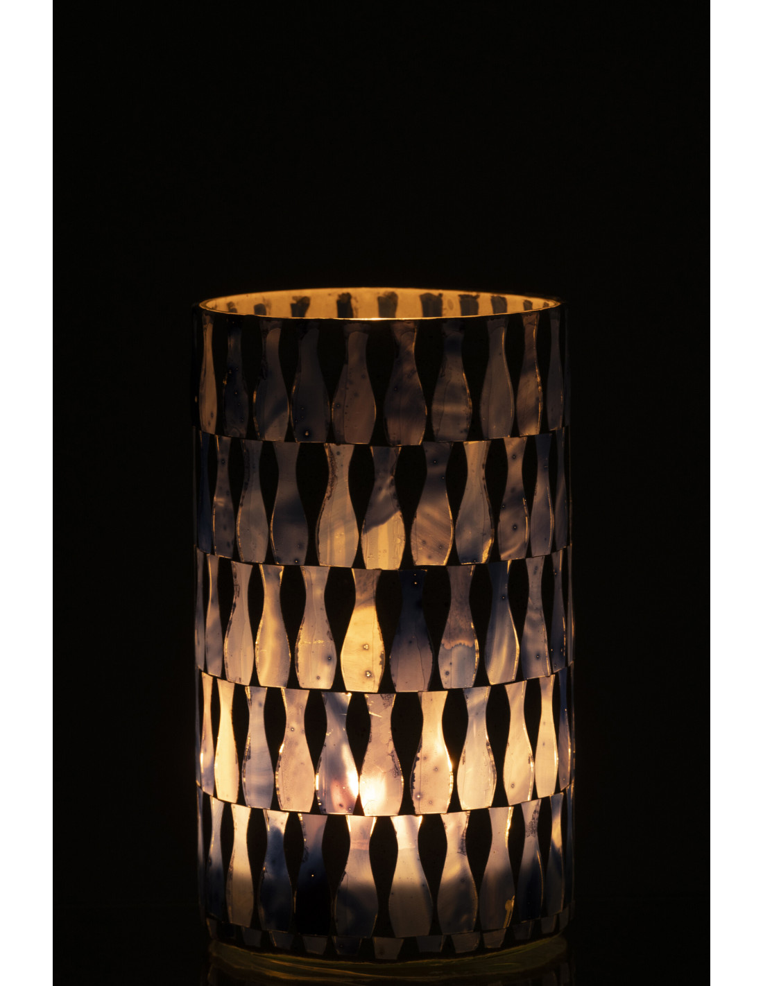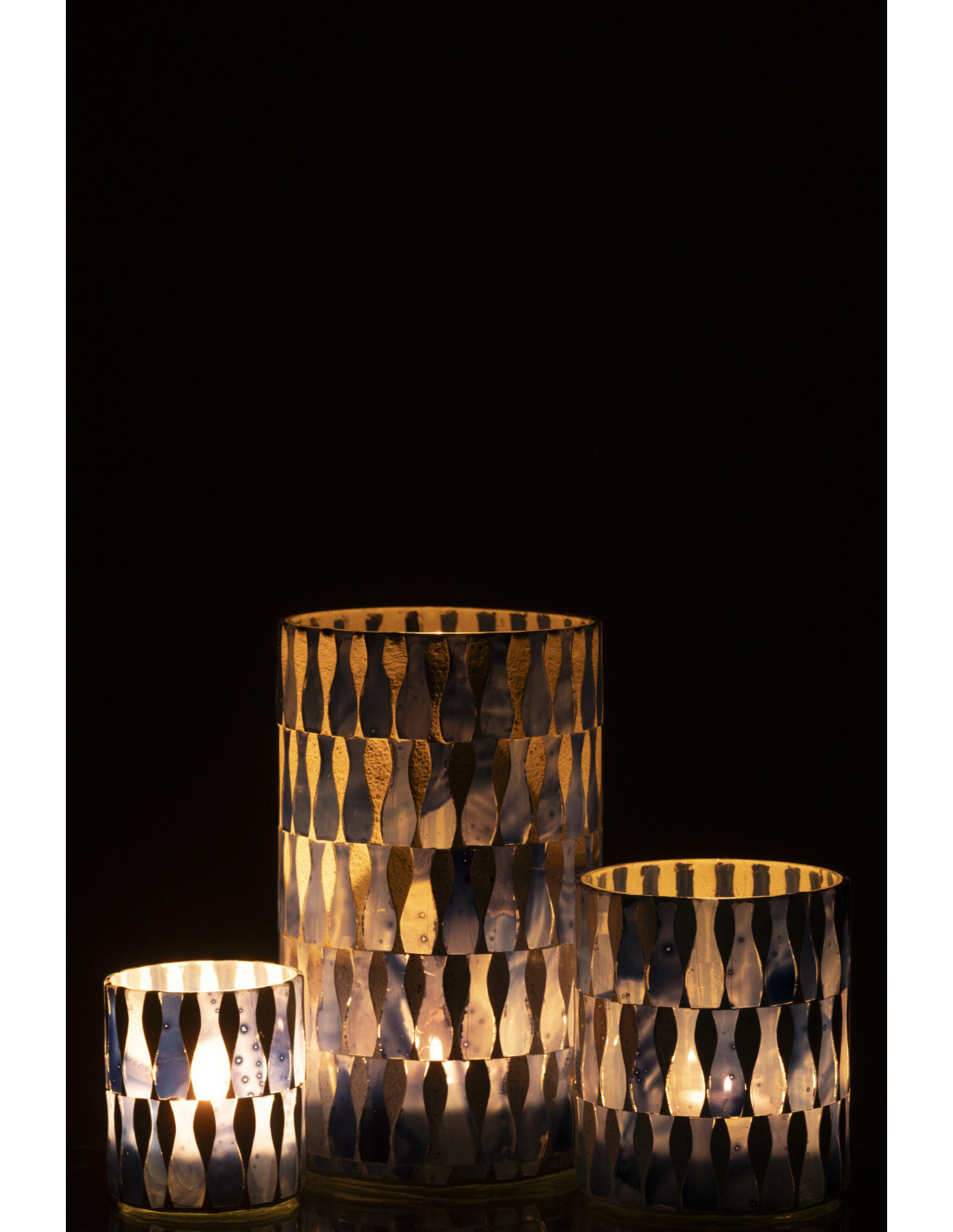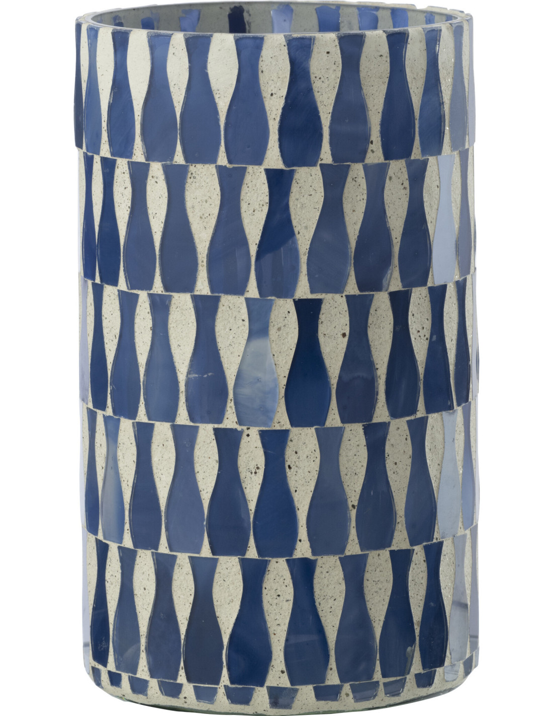Grand Photophore Bord de mer style méditerranéen D 10 cm Verre Bleu Blanc Motif mosaïque Costea