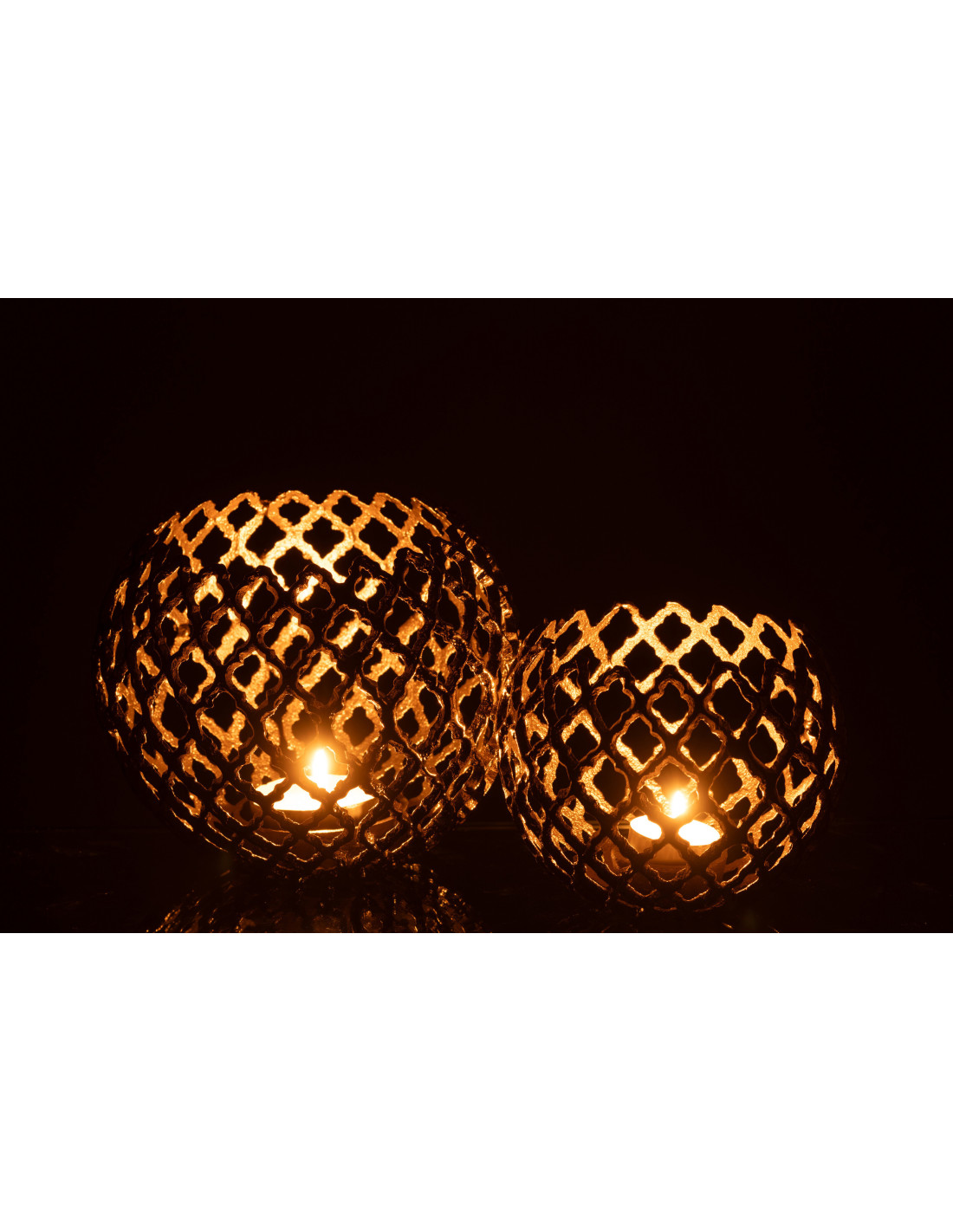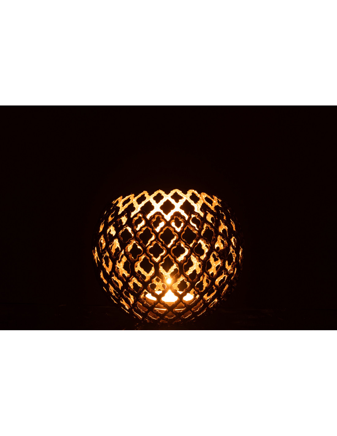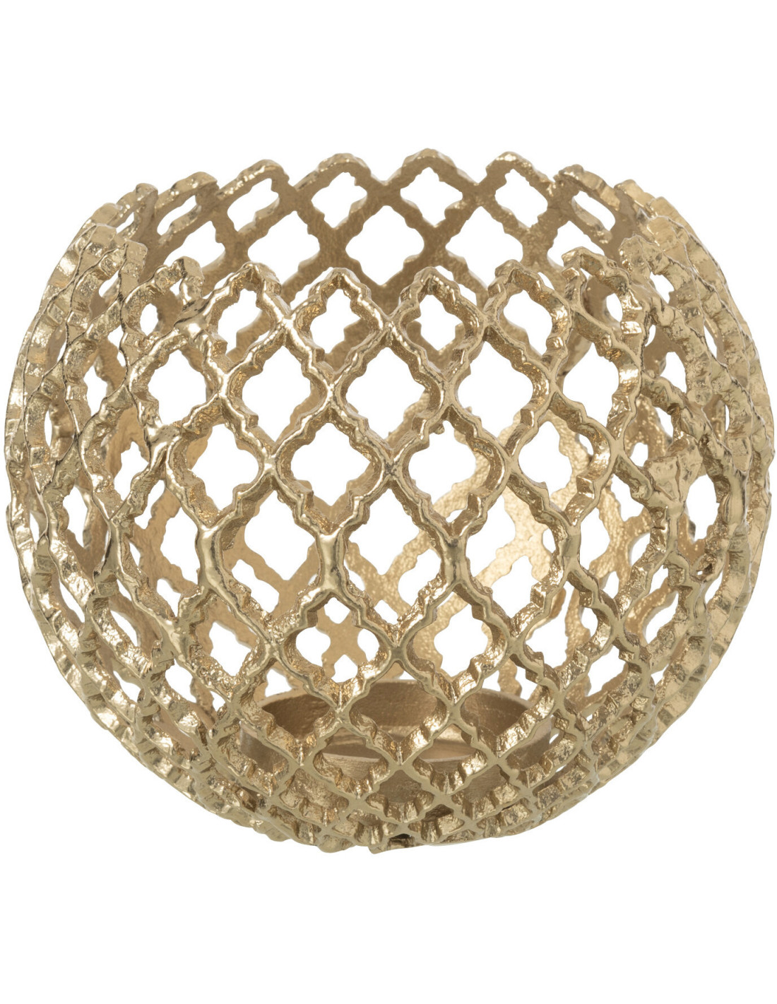 Grand Photophore design chic Rond 20 cm Métal Doré Ajouré Alvéora