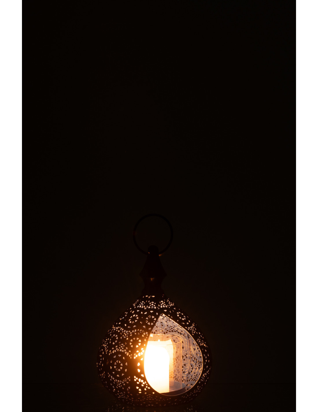 Grand Photophore Lanterne mexicaine Hauteur 21 cm en Métal Bleu Verre Transparent Ajouré Lupita