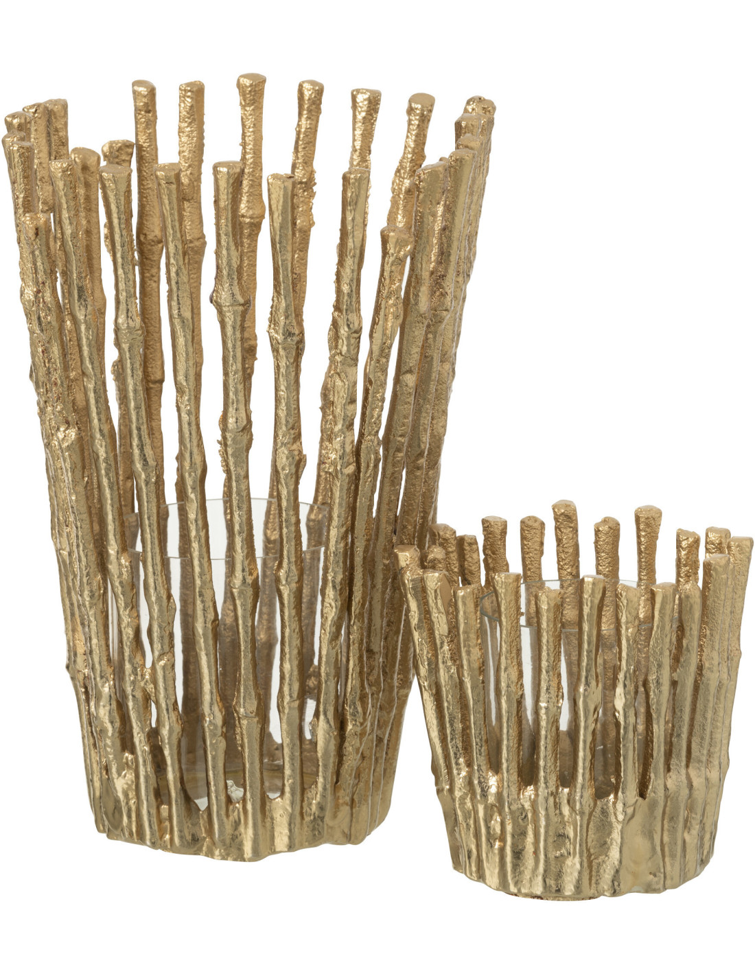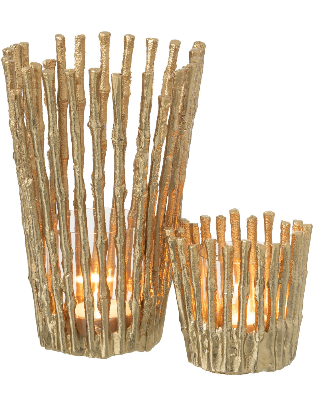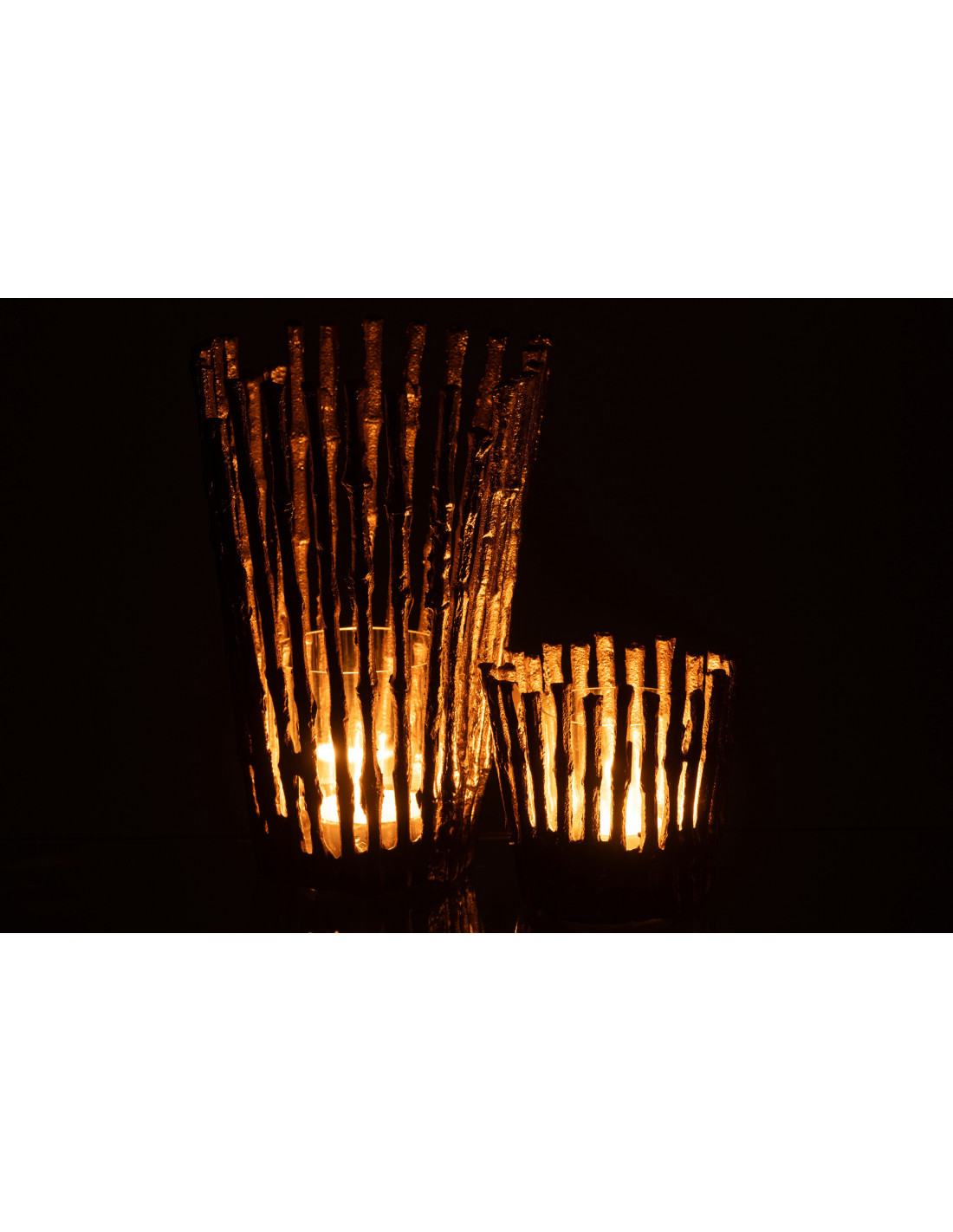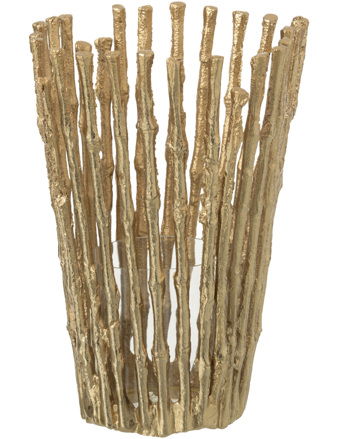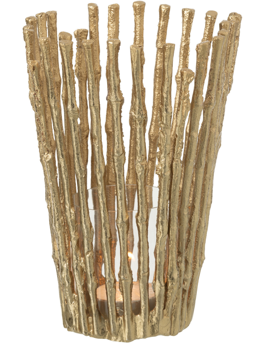 Grand Photophore moderne chic Diamètre 15 cm en Métal Doré Verre Transparent Dorisso