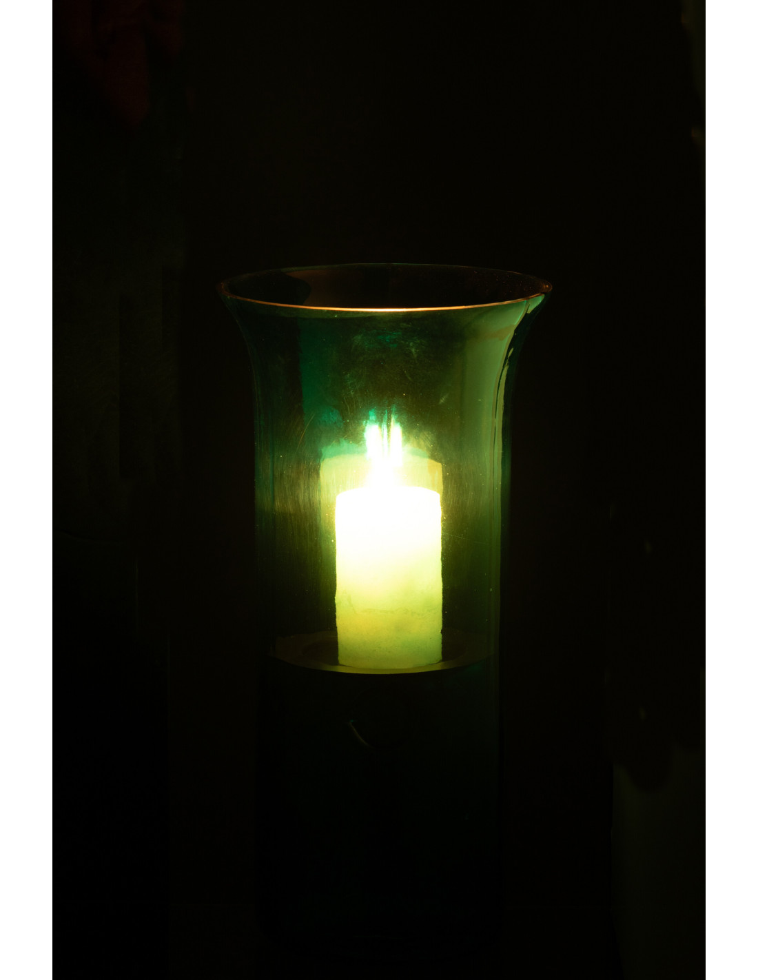 Grand Photophore moderne cylindrique Hauteur 30 cm en Verre Bleu azur Métal Noir Tarifa - 1