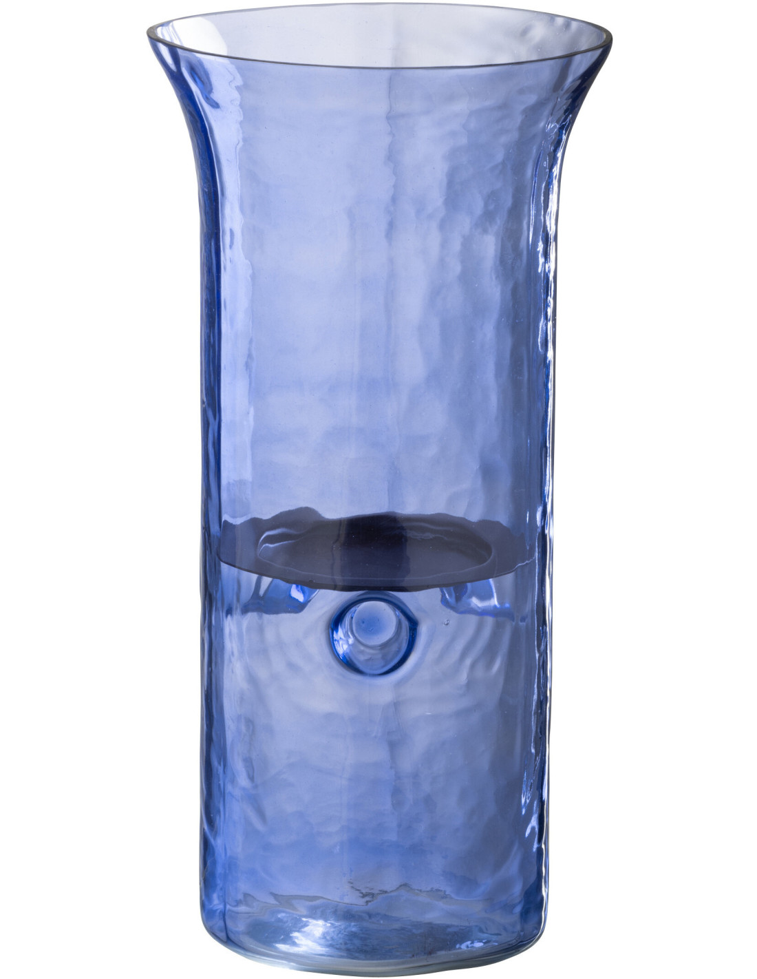 Grand Photophore moderne cylindrique Hauteur 30 cm en Verre Bleu Métal Noir Tarifa