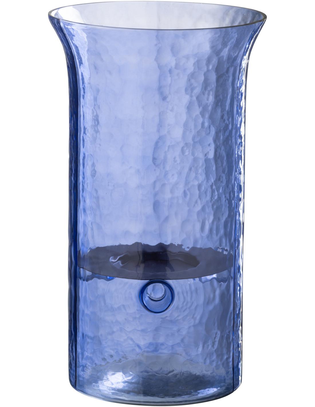 Grand Photophore moderne cylindrique Hauteur 34 cm en Verre Bleu Métal Noir Tarifa