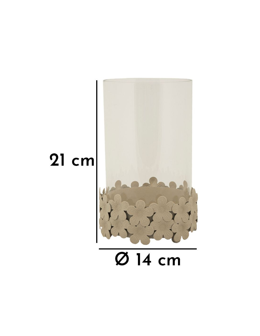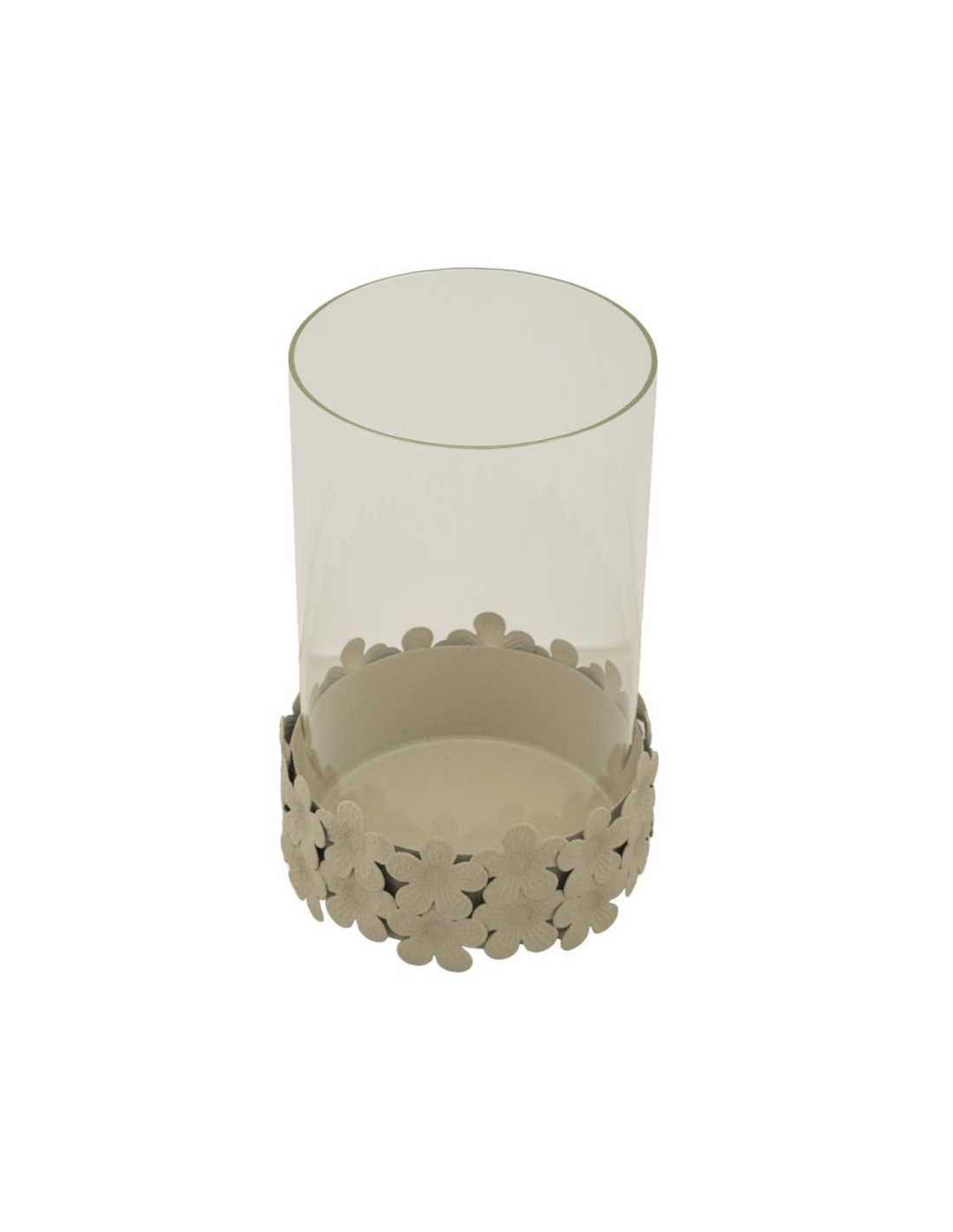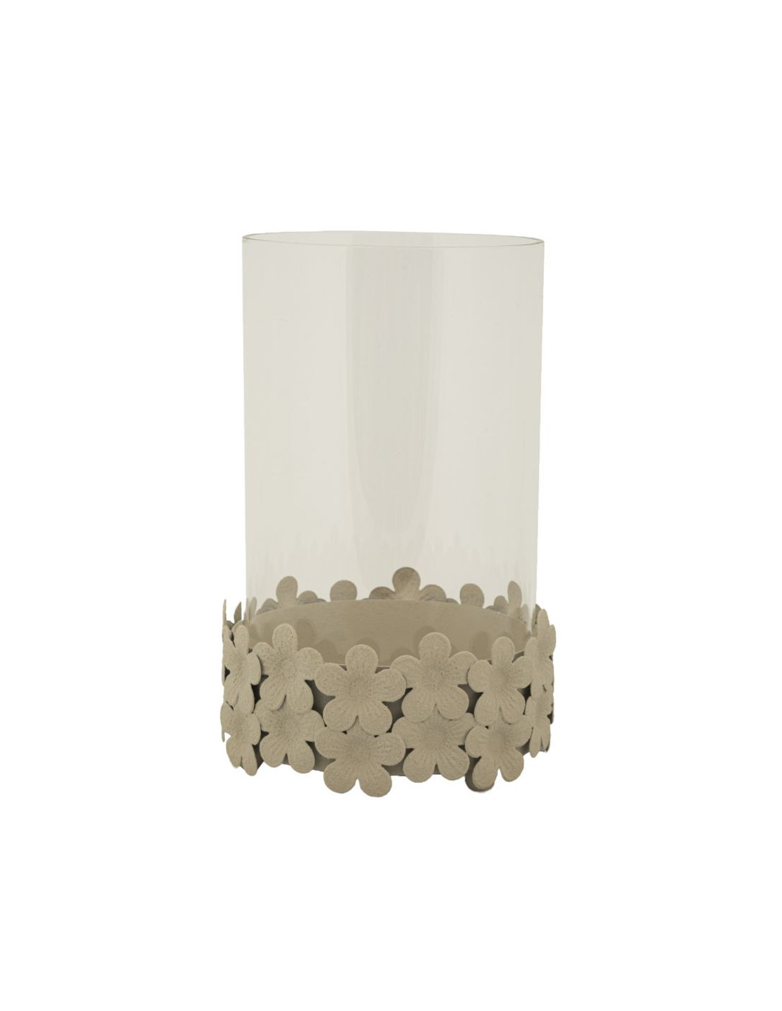 Grand Photophore moderne Diamètre 14 cm Métal Blanc crème Motif fleurs Verre Transparent Dune