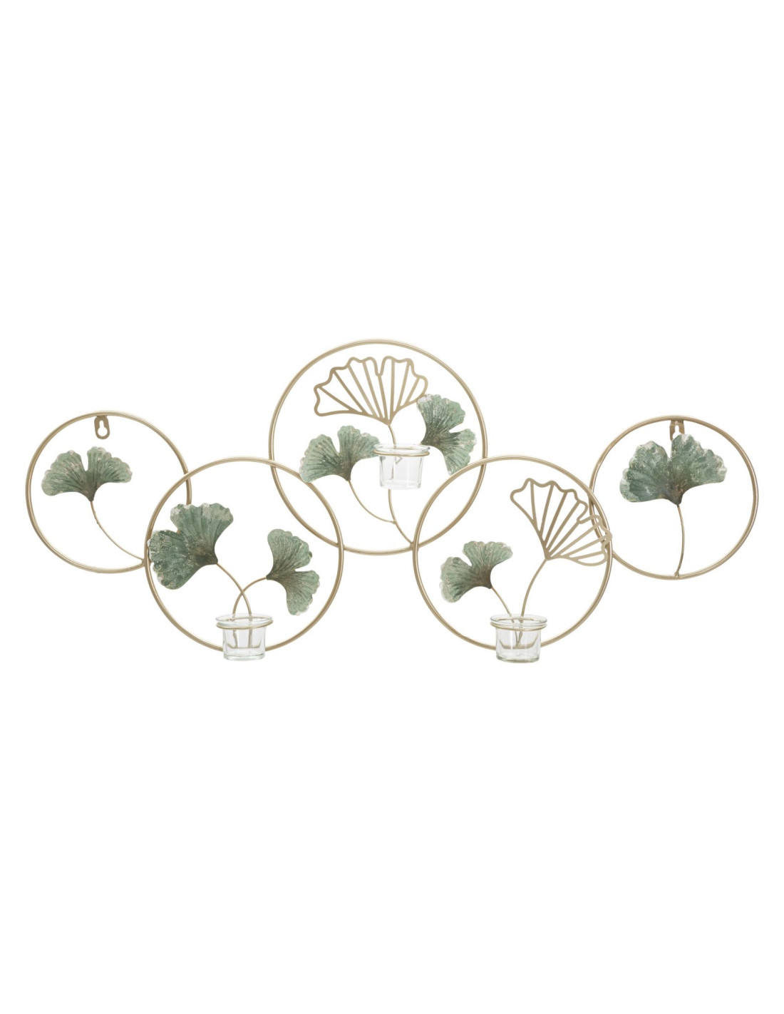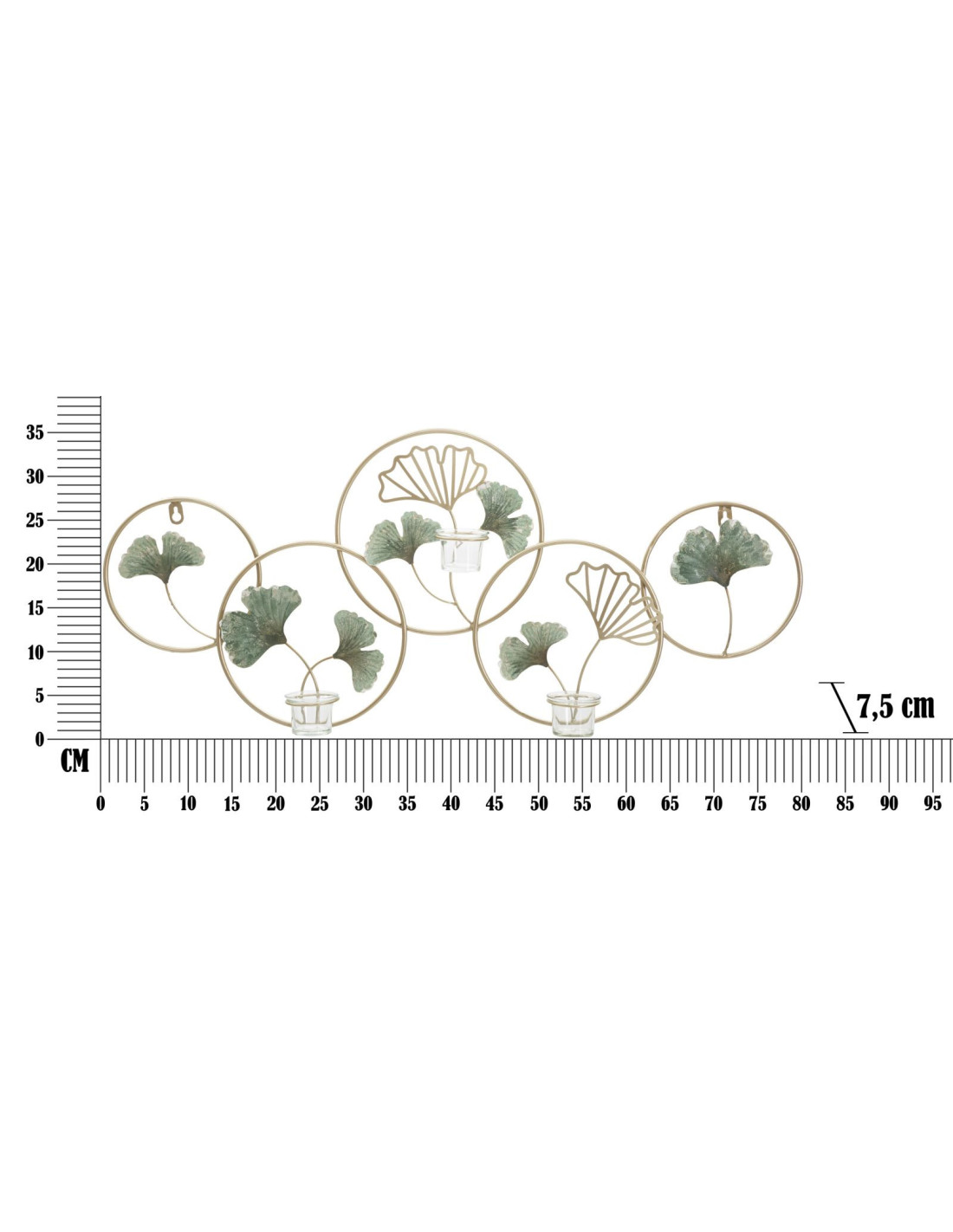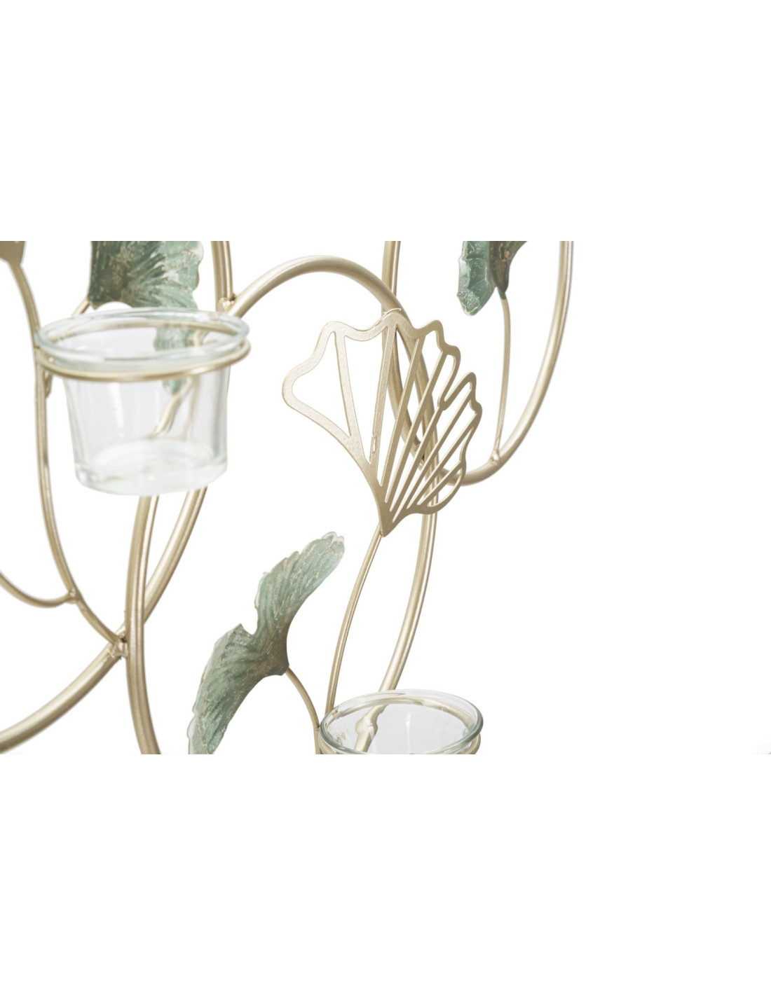 Grand Photophore mural design chic 3 bougies Métal Doré Vert Verre Transparent Greenery