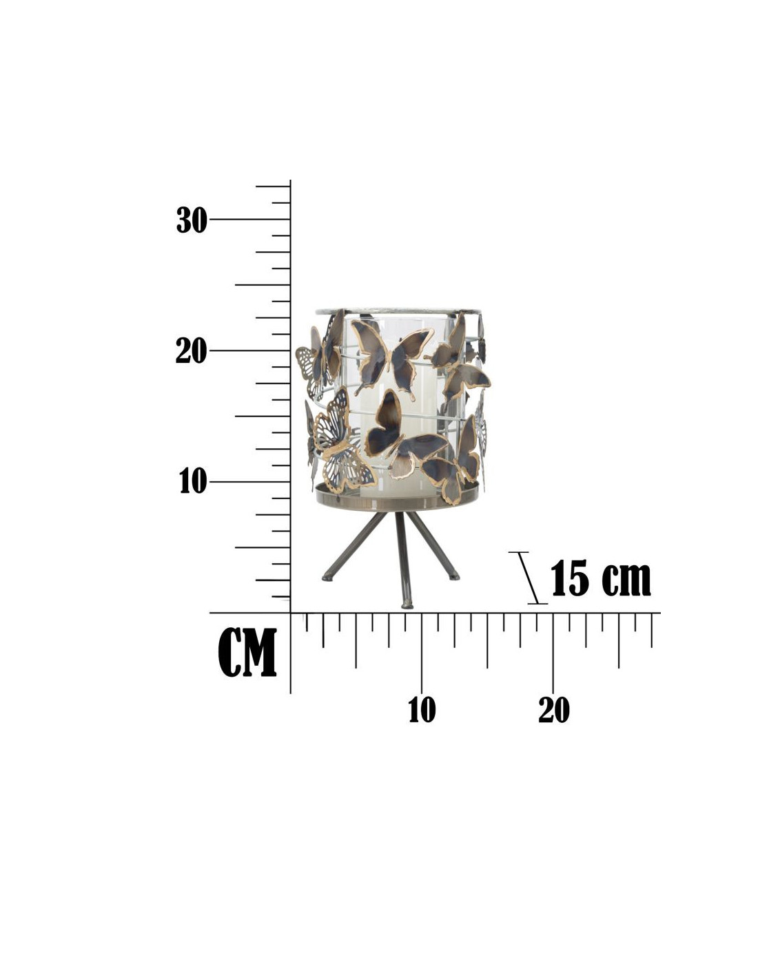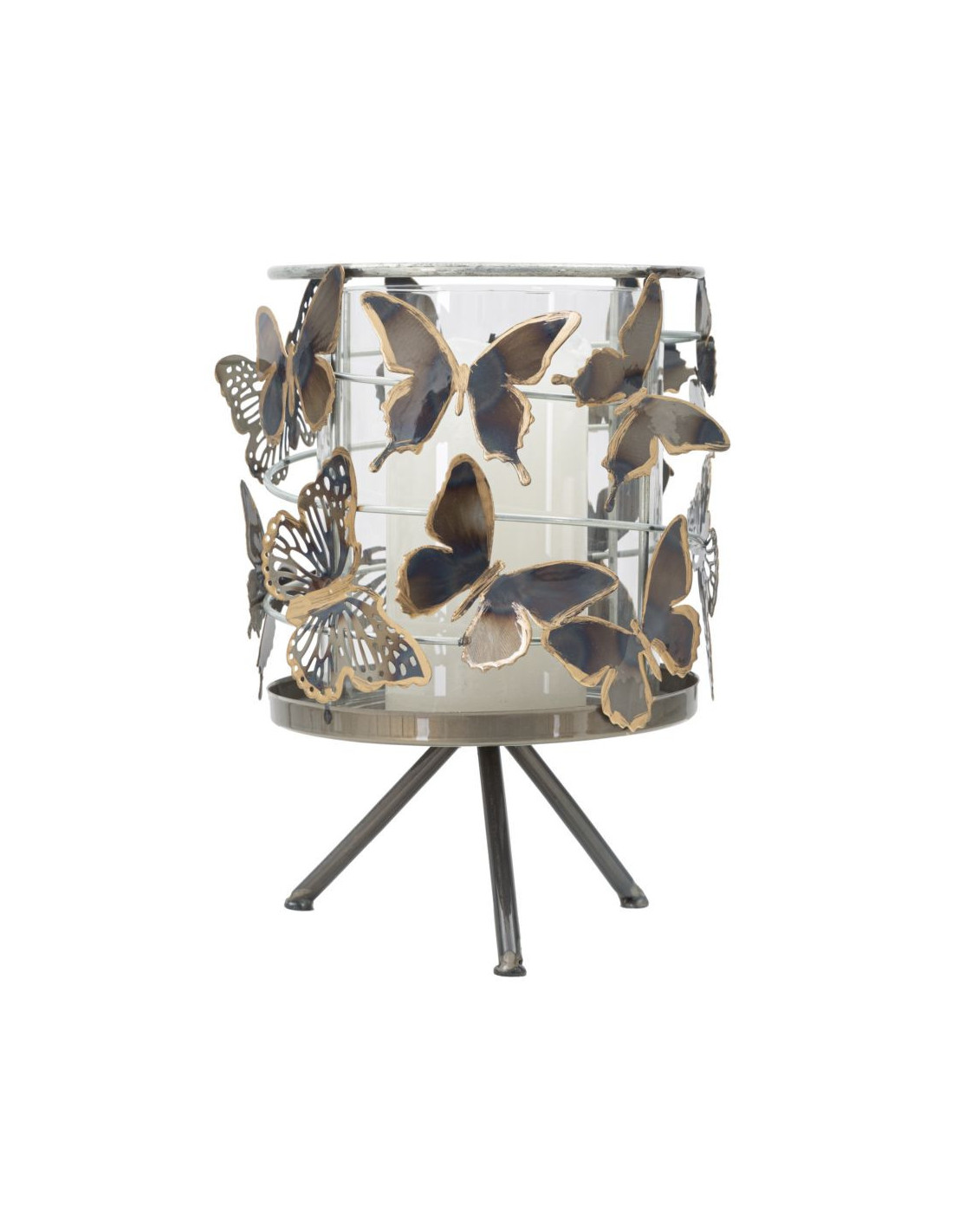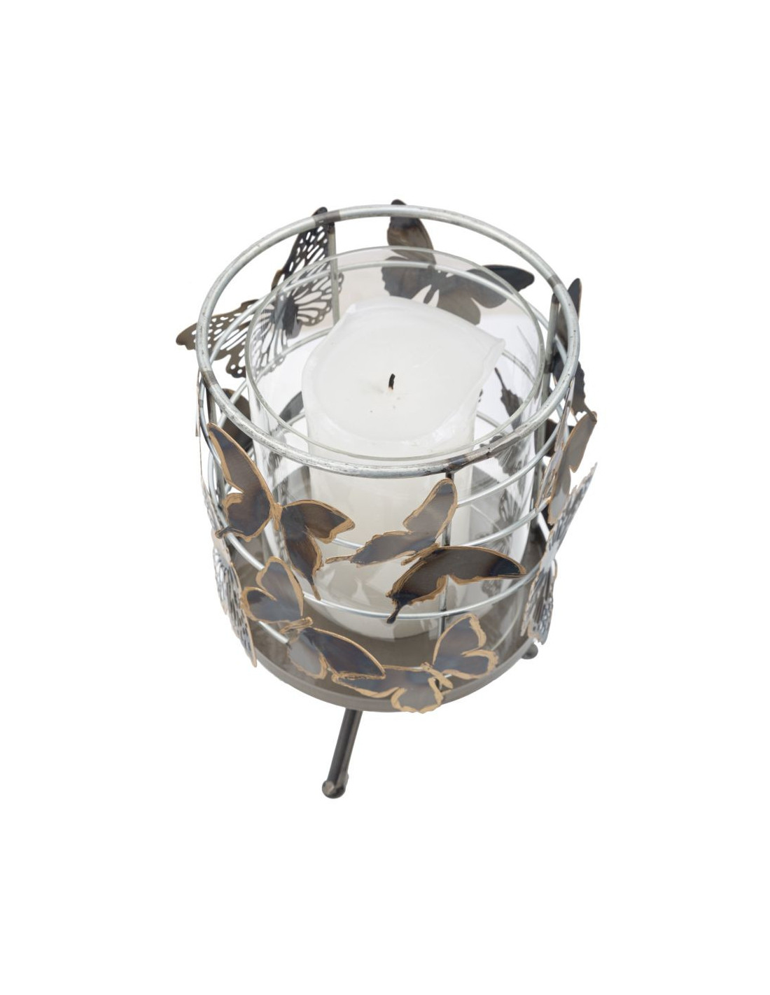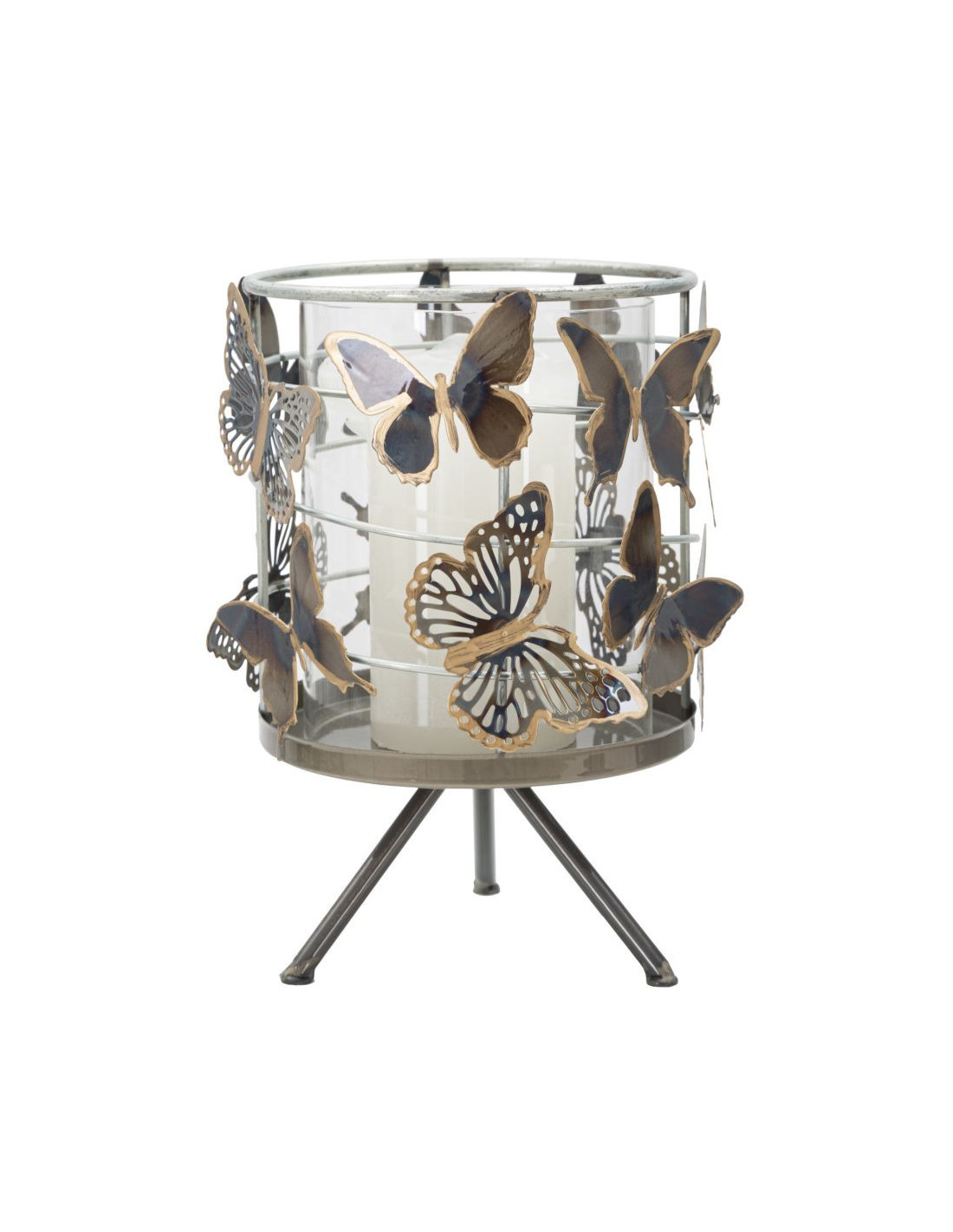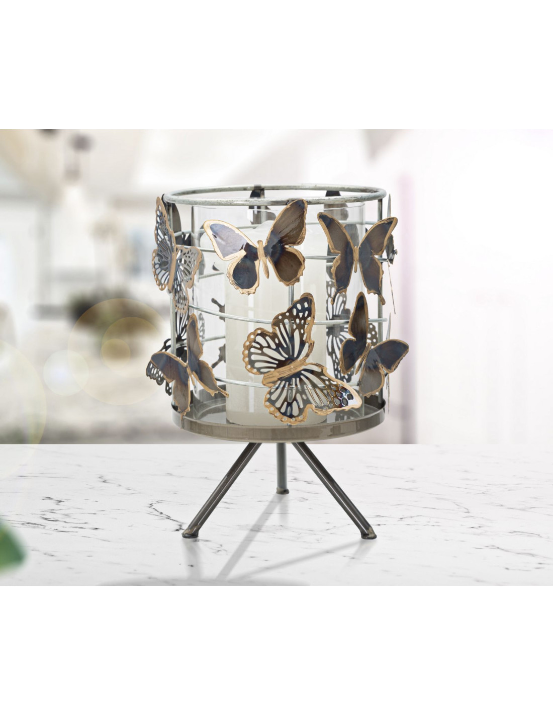 Grand Photophore original Papillons Hauteur 23 cm en Verre Transparent Métal Jorya