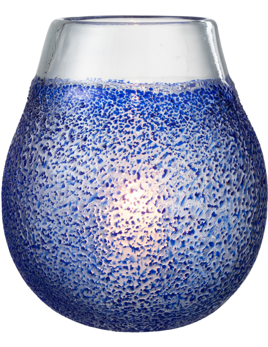 Grand Photophore rond 21 cm en Verre Bleu Transparent Santorini