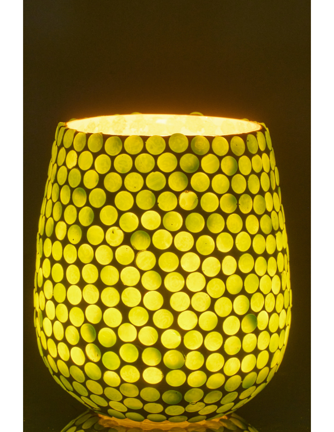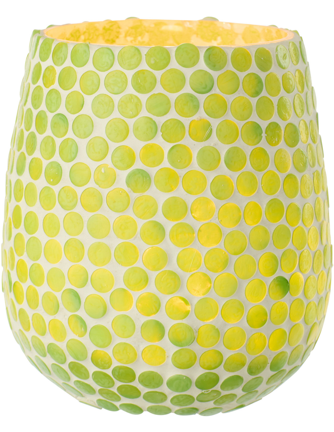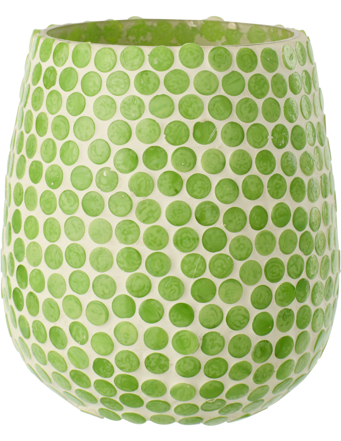 Grand Photophore style méditerranéen D 11 cm Verre Vert Blanc Mosaïque Tessella