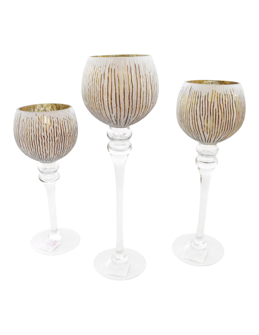 Grand Photophore sur pied Calice Verre Blanc Cannelé Transparent Kovan (Lot de 3)