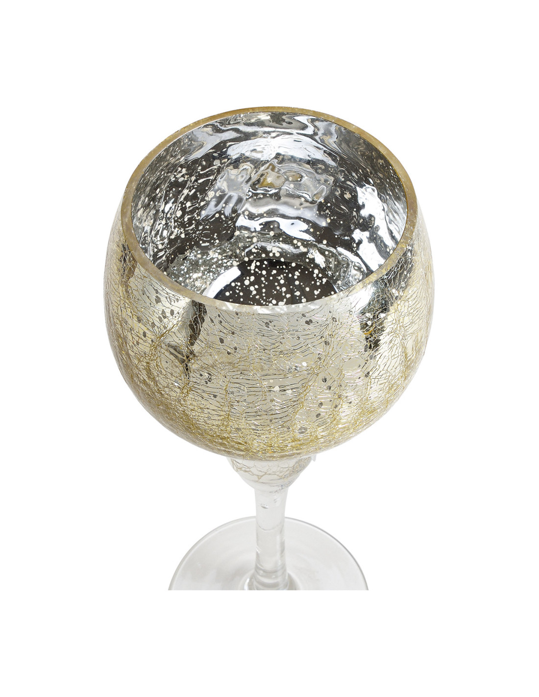 Grand Photophore sur pied Calice Verre Doré Craquelé Transparent Kovan (Lot de 3) - 6