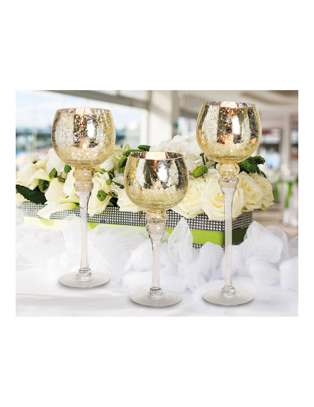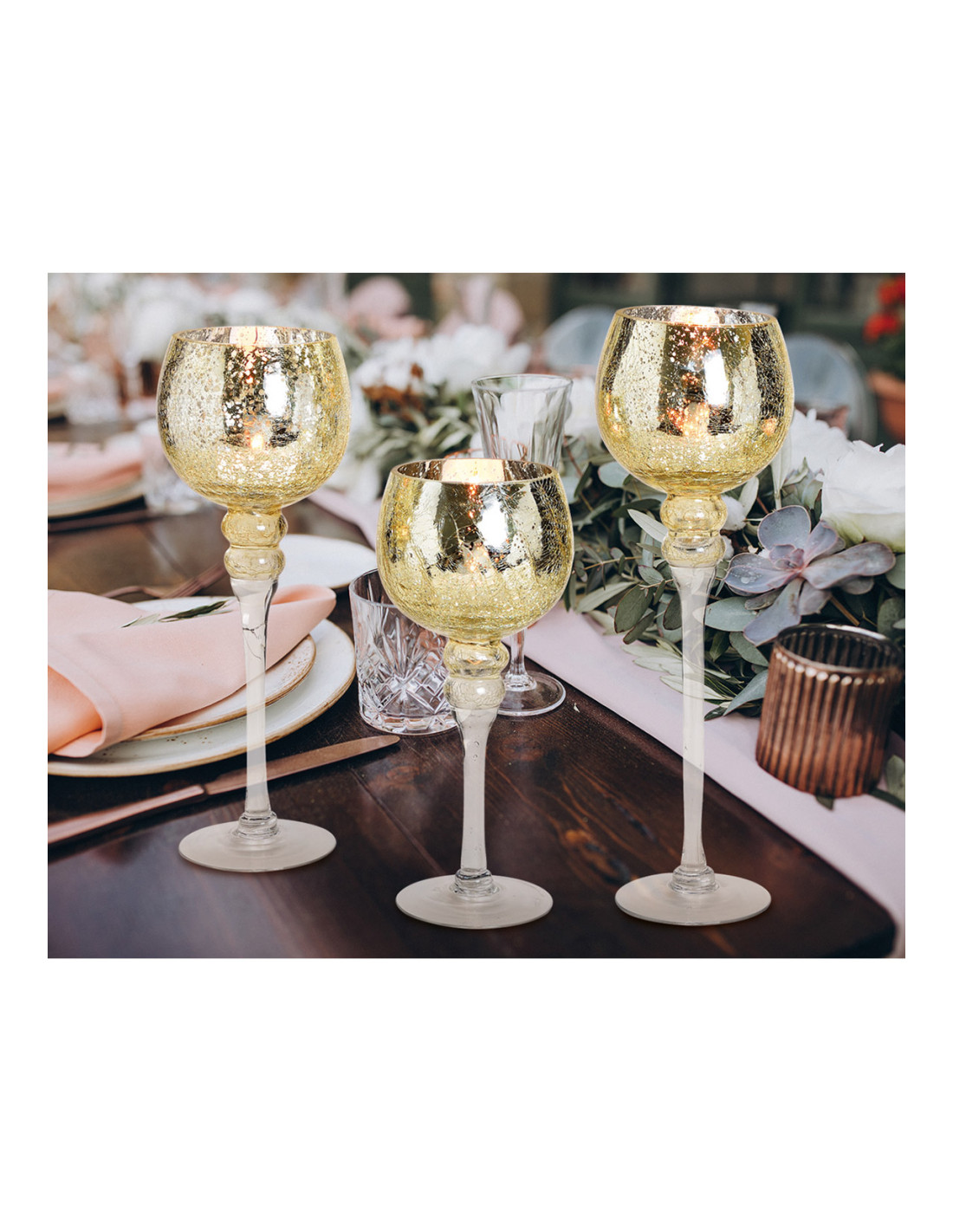Grand Photophore sur pied Calice Verre Doré Craquelé Transparent Kovan (Lot de 3)