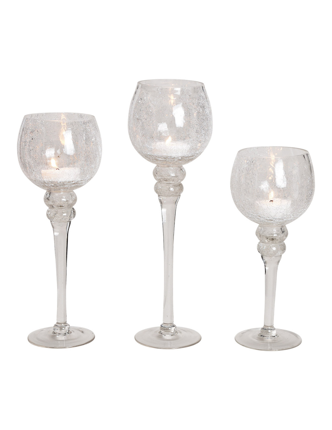 Grand Photophore sur pied Calice Verre Transparent Craquelé Kovan (Lot de 3)