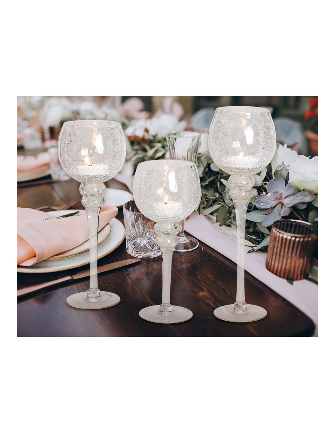 Grand Photophore sur pied Calice Verre Transparent Craquelé Kovan (Lot de 3) - 1