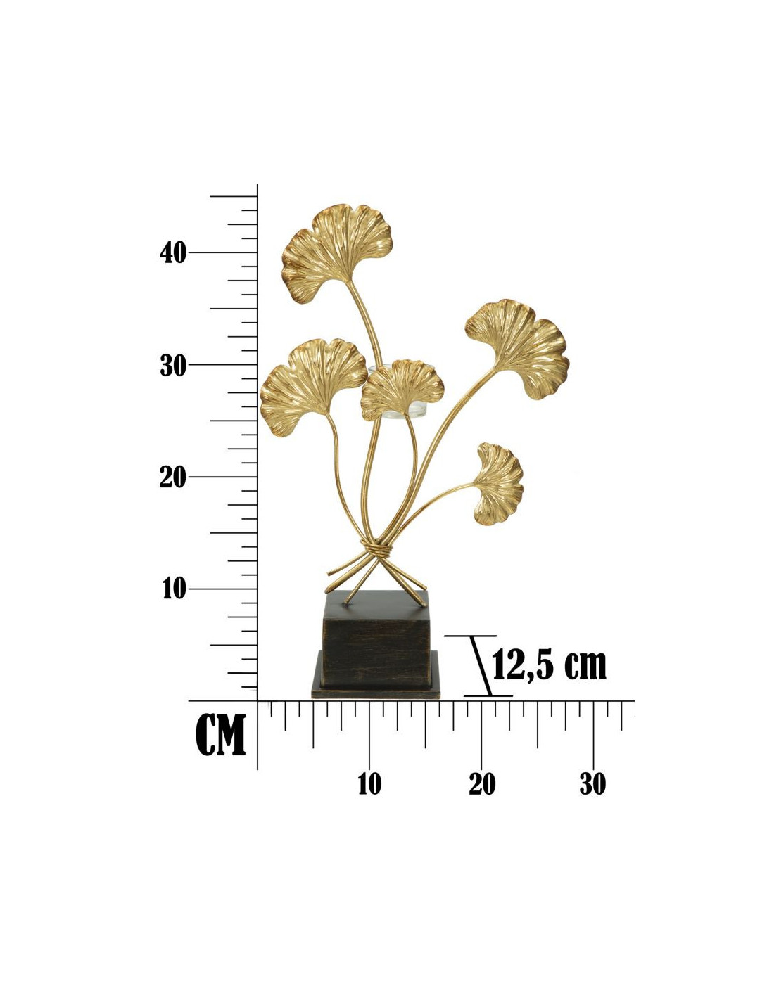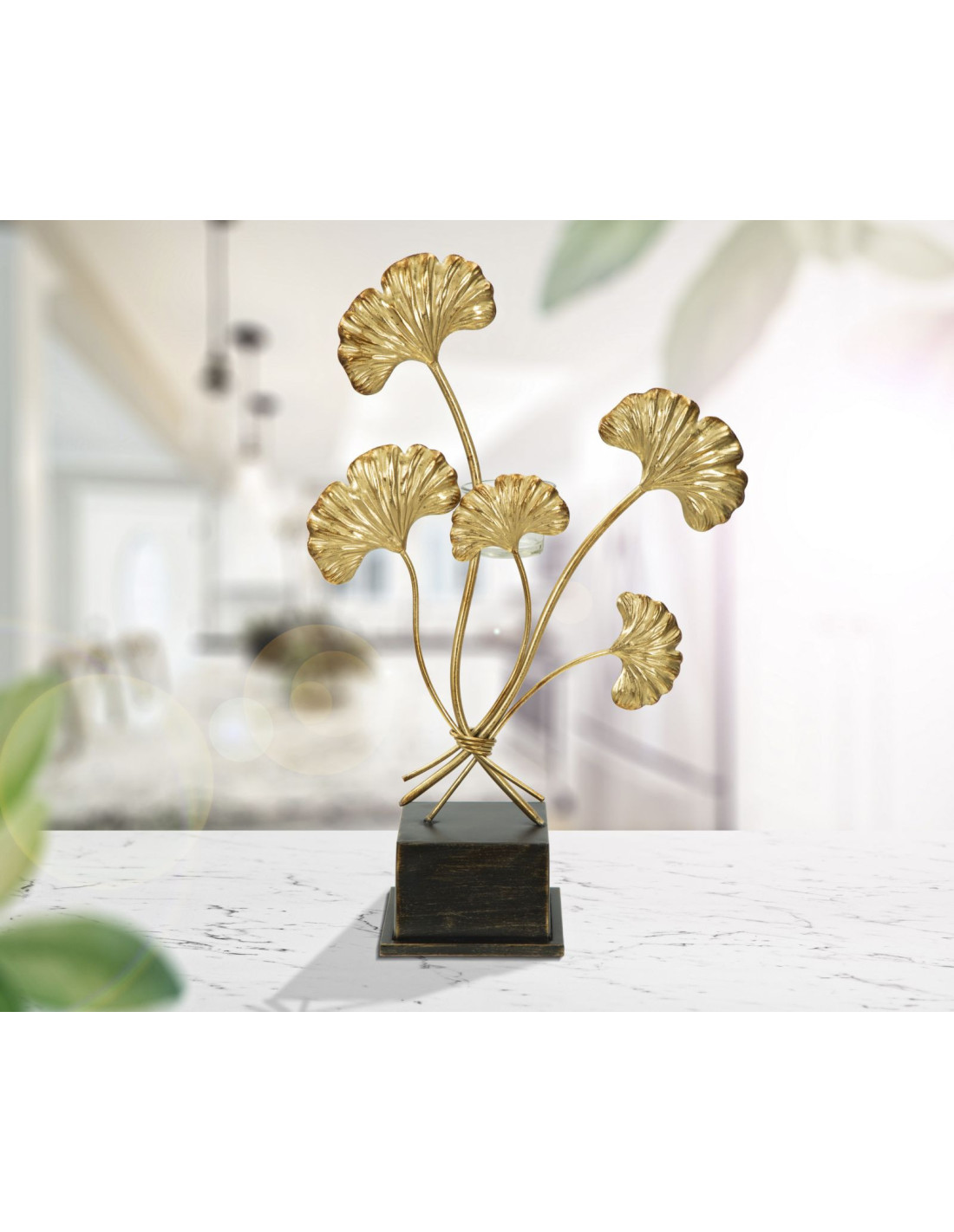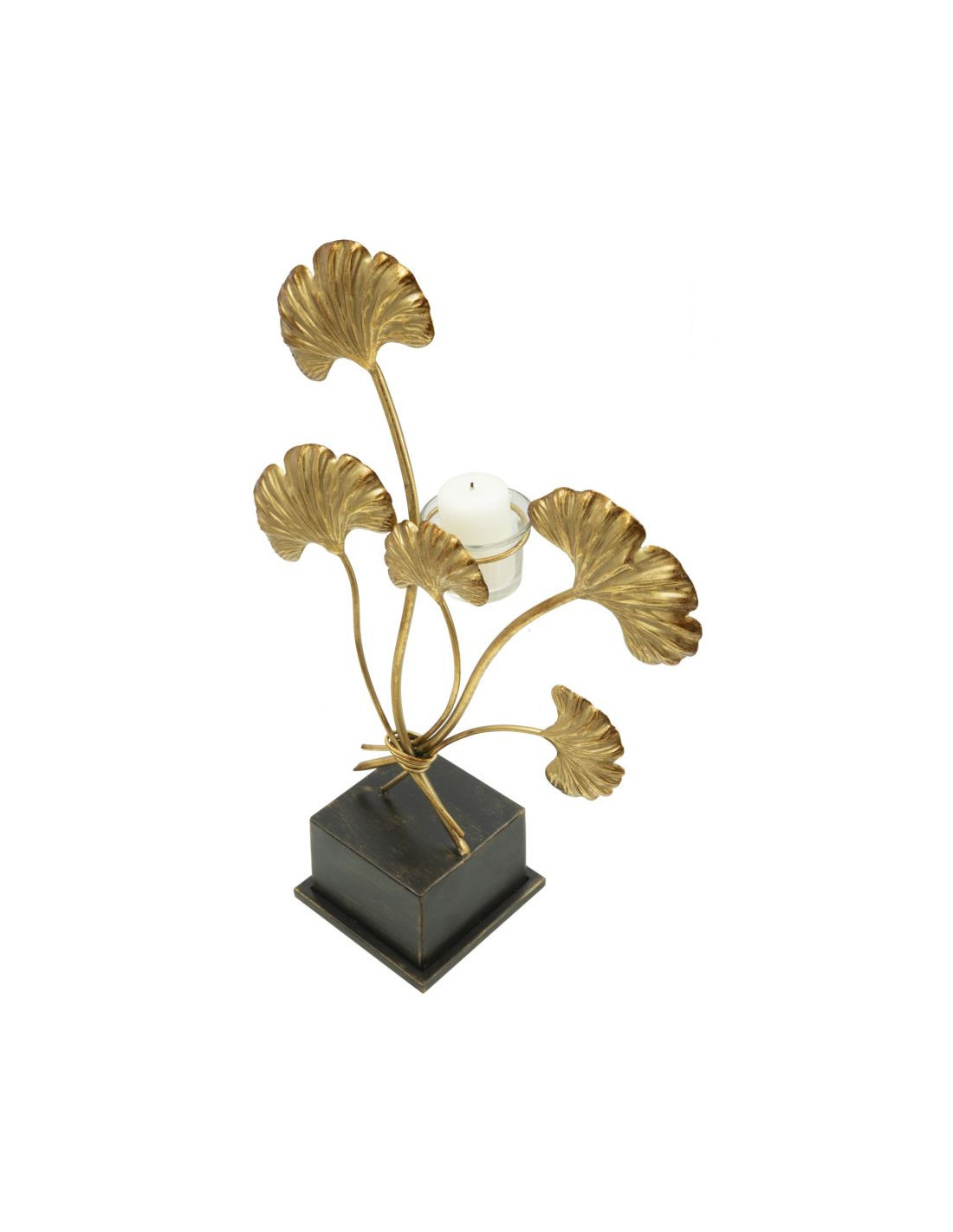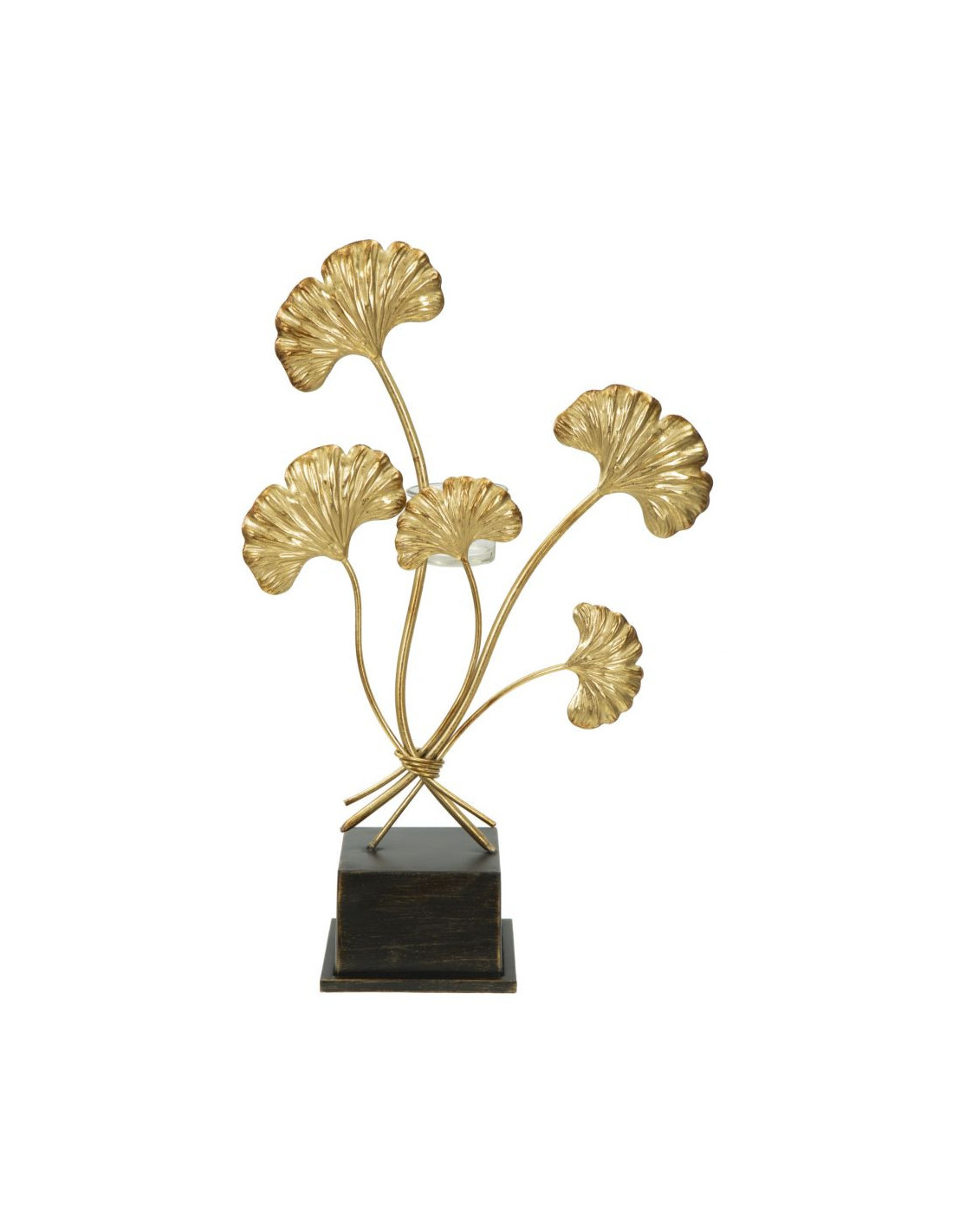 Grand Photophore sur pied moderne chic Fleurs Hauteur 44 cm en Métal Doré Verre Transparent Iris