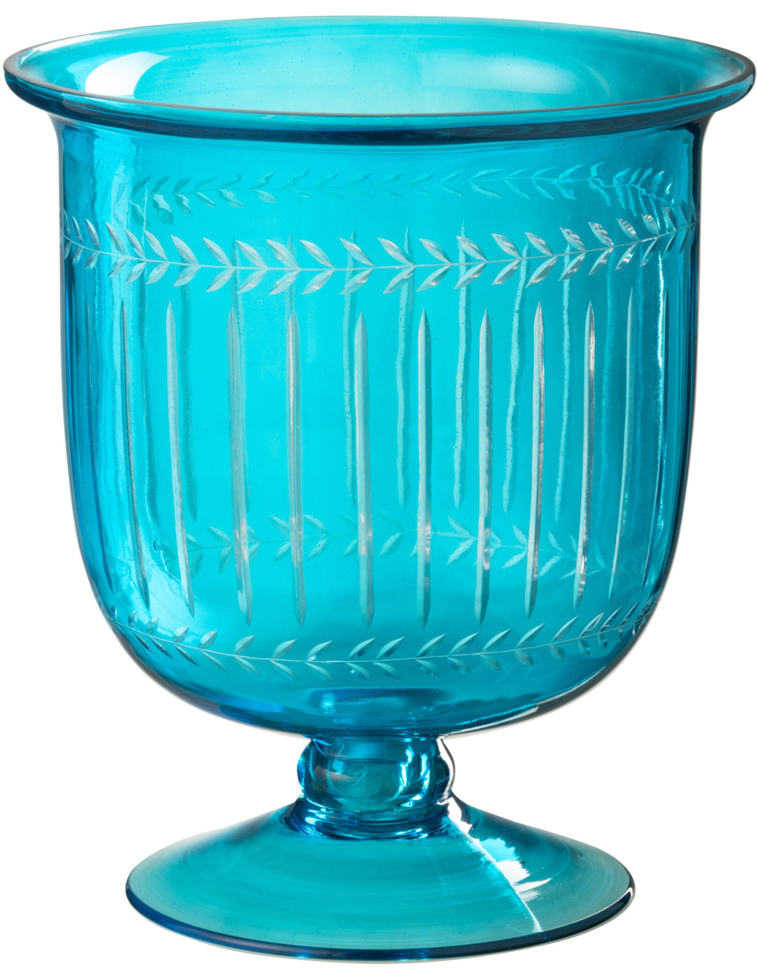 Grand Photophore Verre sur pied Diamètre 22 cm en Verre Bleu azur Métal Noir Tarifa