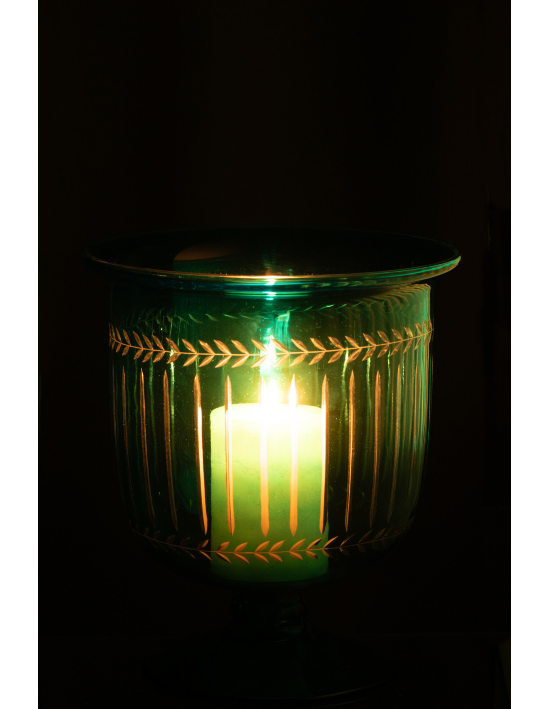 Grand Photophore Verre sur pied Diamètre 22 cm en Verre Bleu azur Métal Noir Tarifa - 1