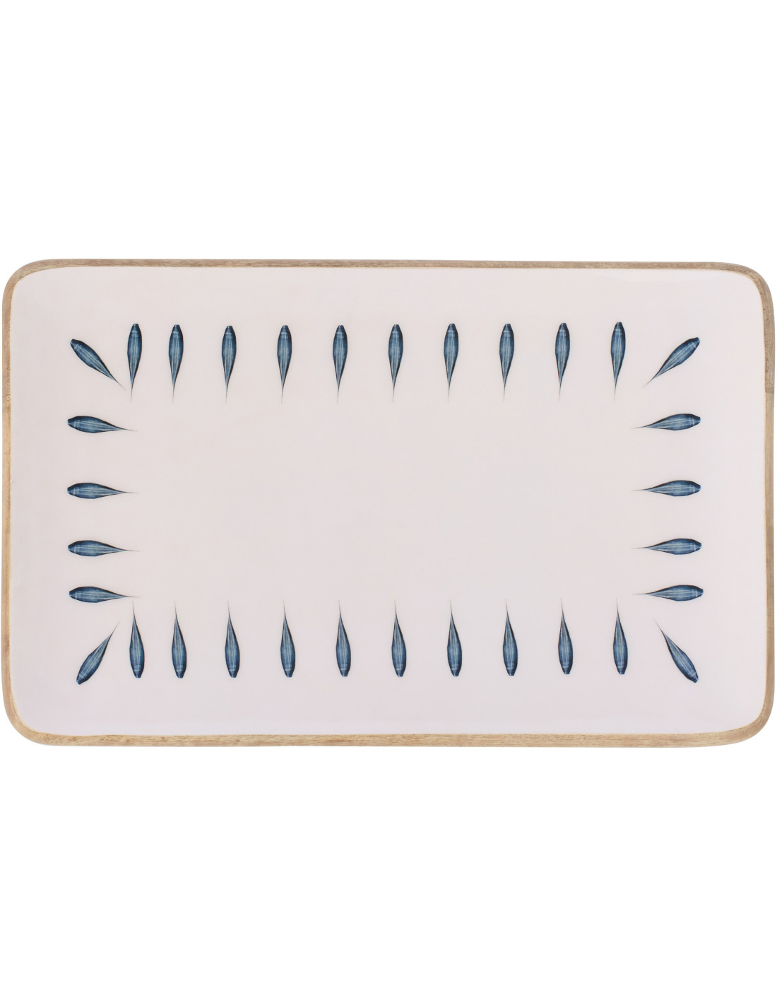 Grand Plat japandi Rectangulaire 40 cm Bois de manguier Blanc Bleu foncé Naturel Kizuna