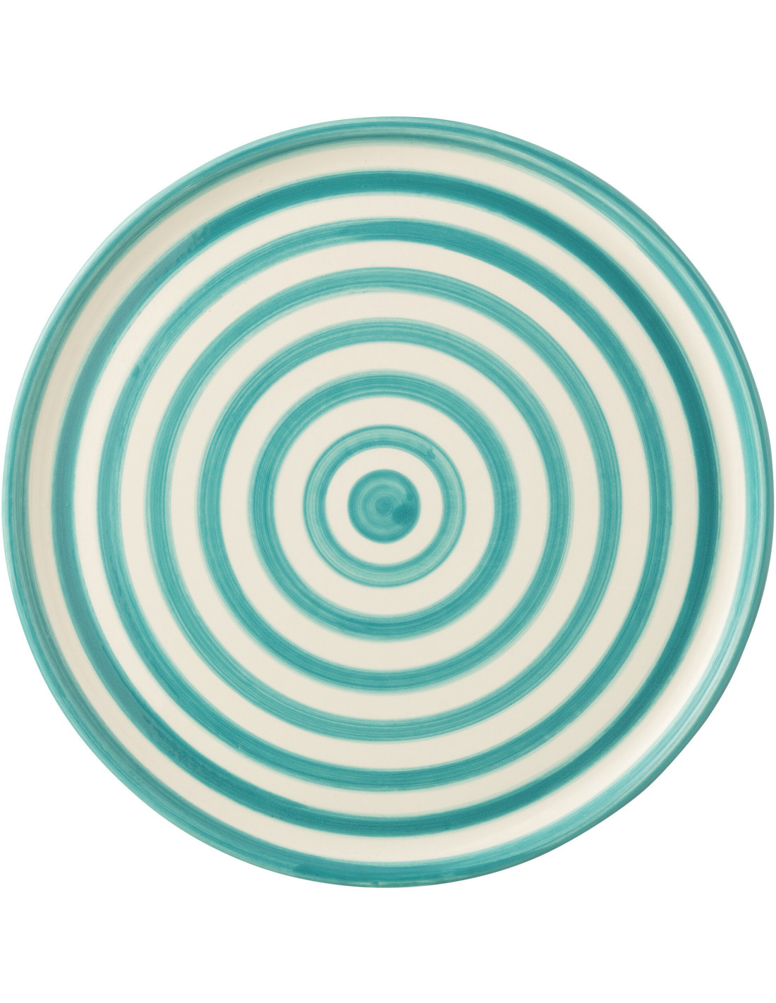 Grand Plat original rond 34 cm en Céramique Bleu aqua Blanc Motif lignes Granada - 1