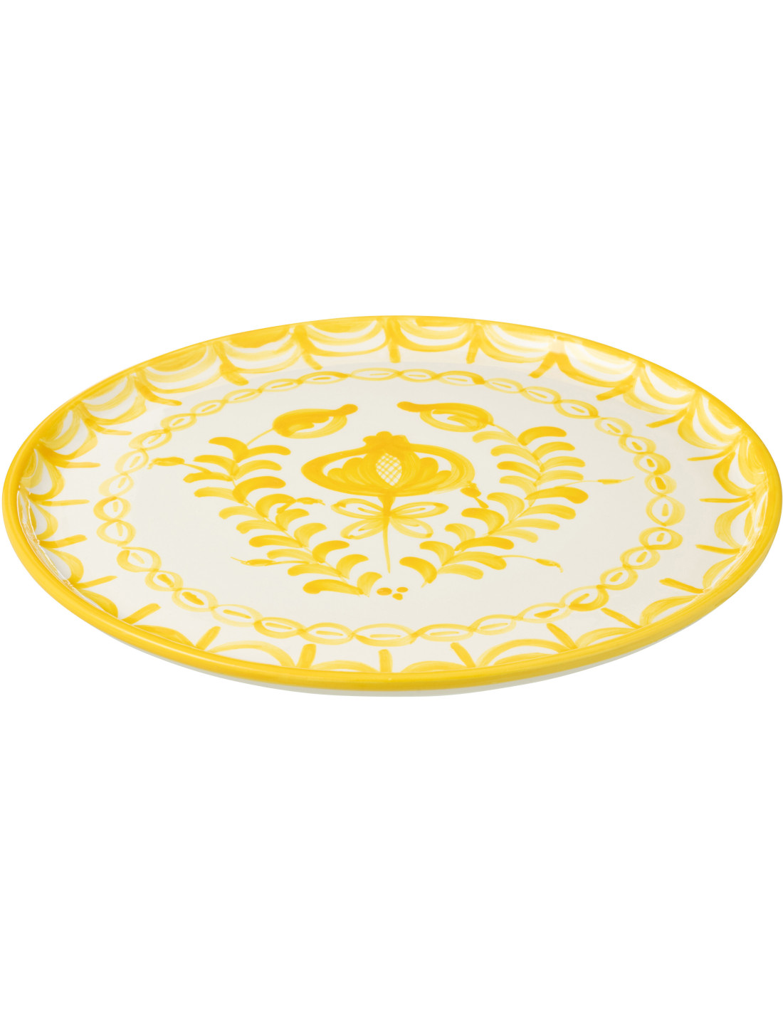 Grand Plat original rond 34 cm en Céramique Jaune Blanc Motif fleur Granada