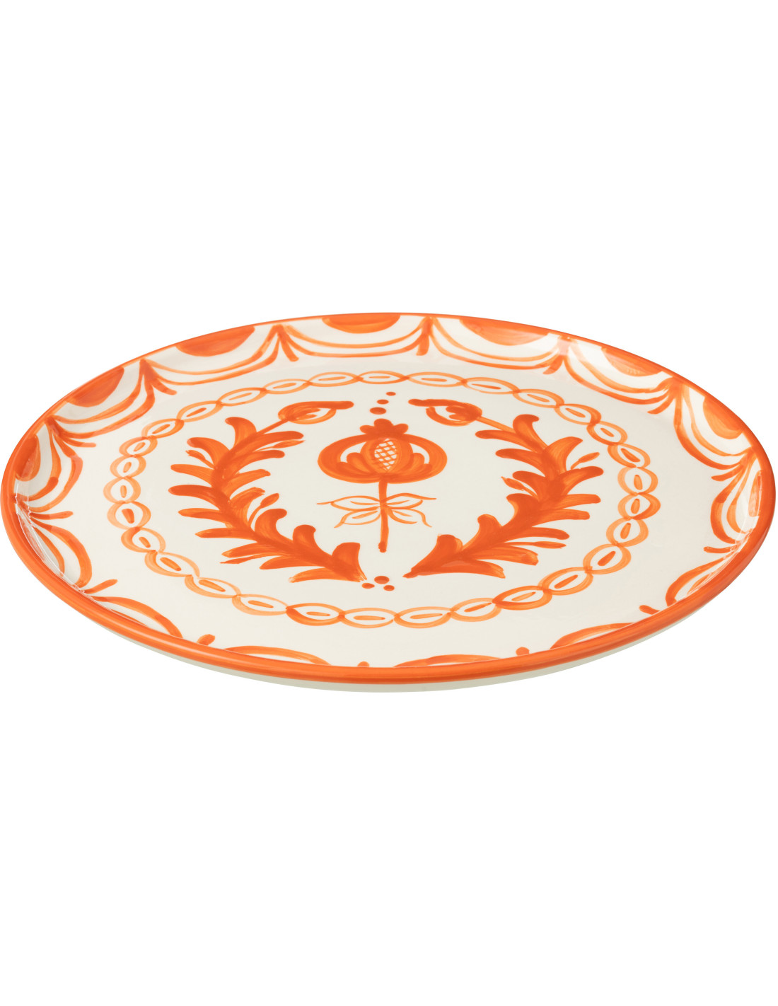 Grand Plat original rond 34 cm en Céramique Orange Blanc Motif fleur Granada - 1