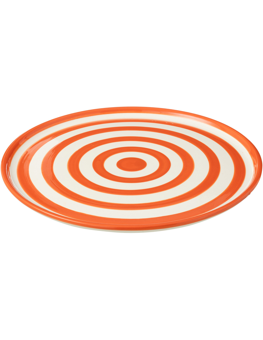 Grand Plat original rond 34 cm en Céramique Orange Blanc Motif lignes Granada - 1