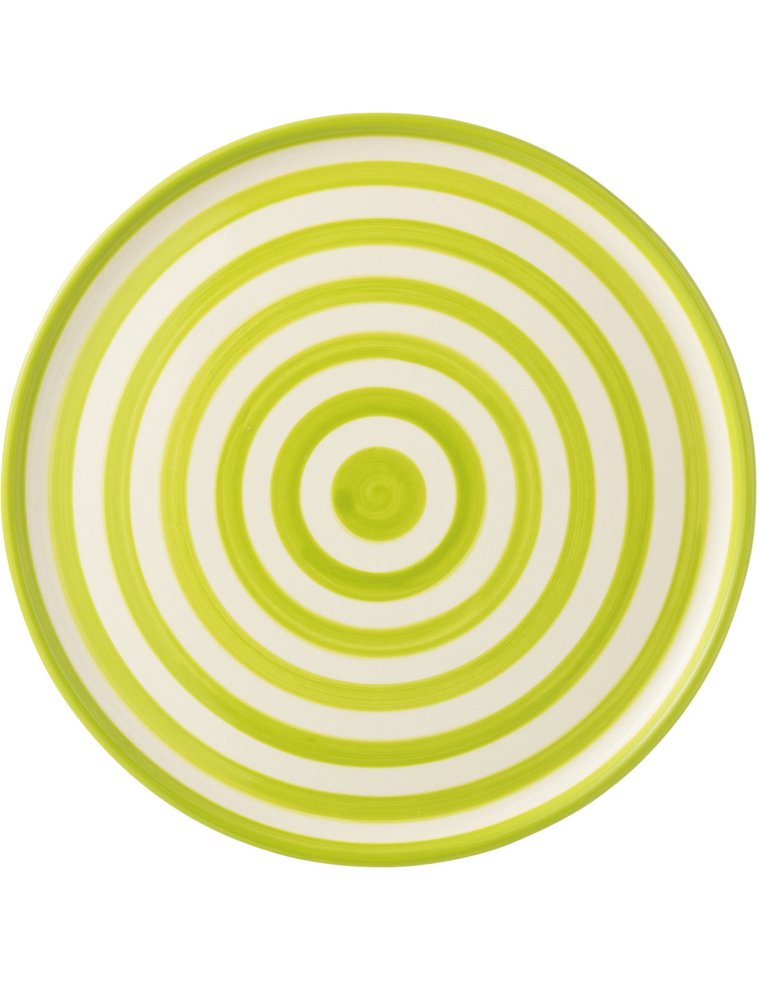 Grand Plat original rond 34 cm en Céramique Vert Blanc Motif lignes Granada