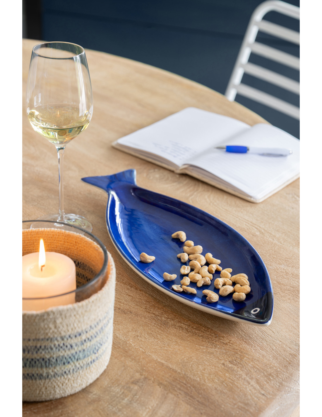 Grand Plat style bord de mer Poisson 42 cm Porcelaine Bleu foncé Blanc Zeeblauw