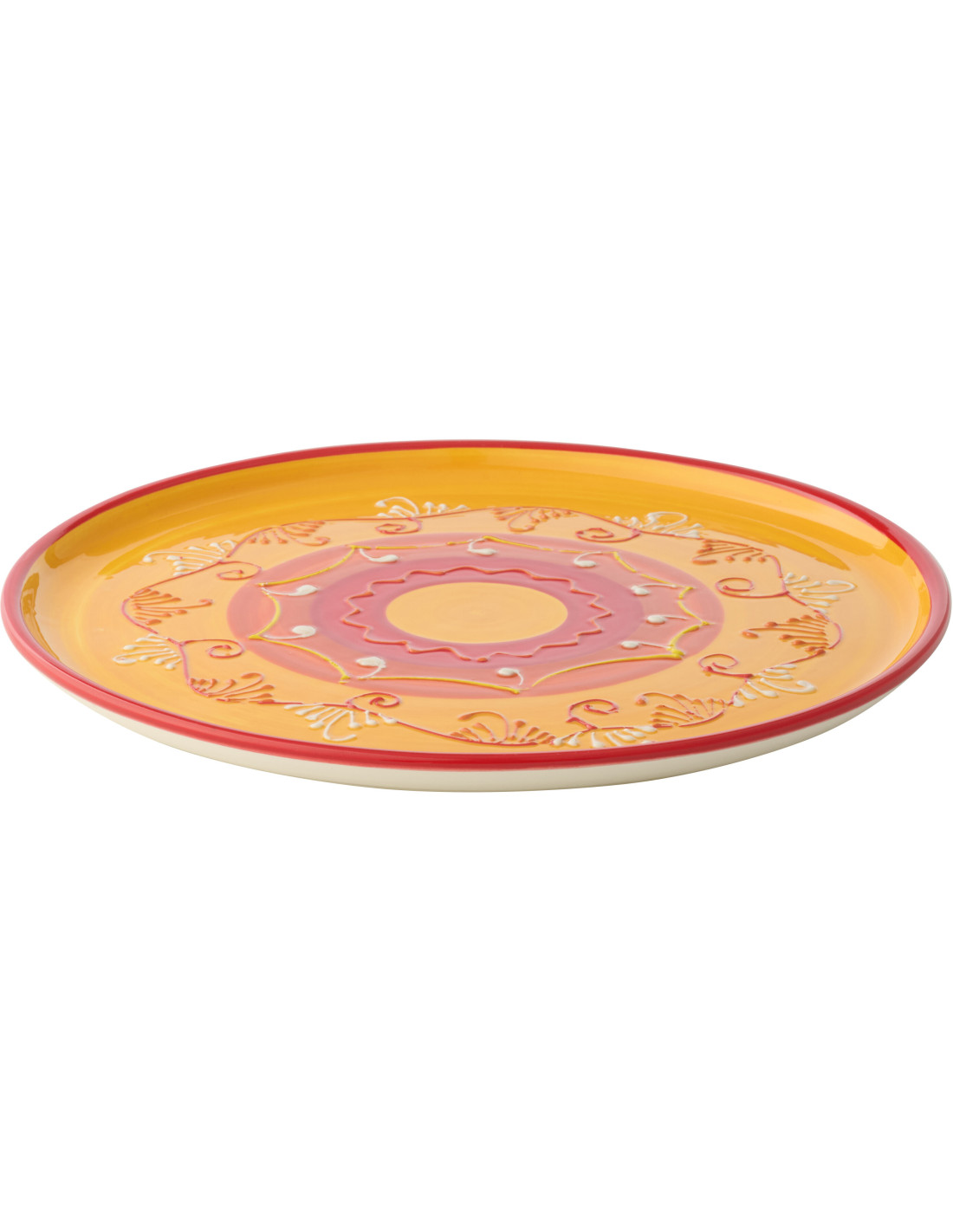 Grand Plat style méditerranéen Rond 34 cm Céramique Orange Rouge Motif floral Siena