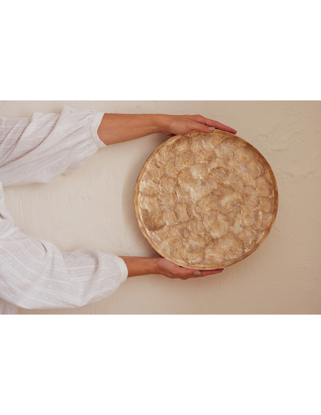 Grand Plateau déco bord de mer 33 cm Coquillage Marron clair Schelpen