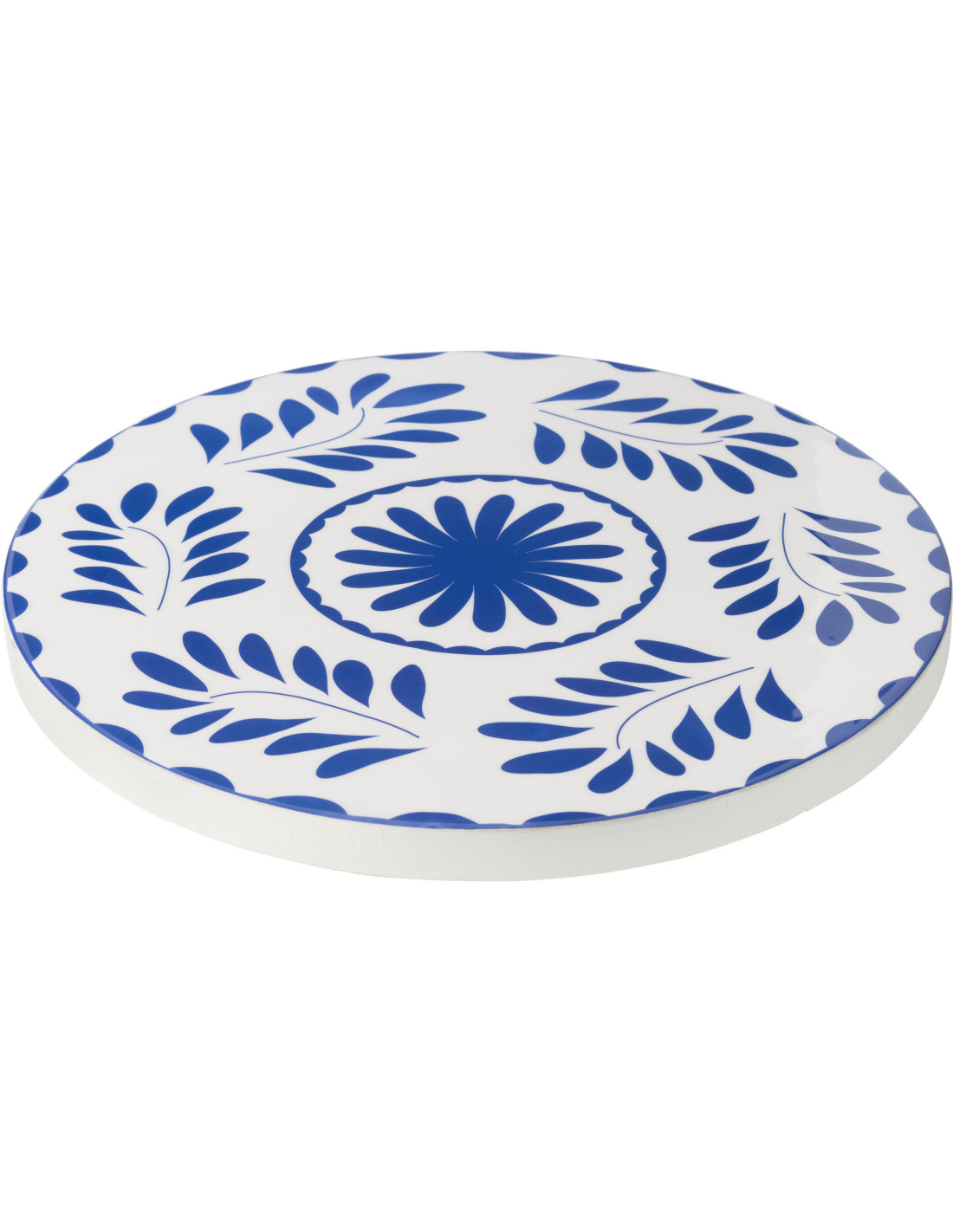 Grand Plateau tournant rond 45 cm en Bois de manguier Bleu Blanc Motif fleurs Lupa - 1