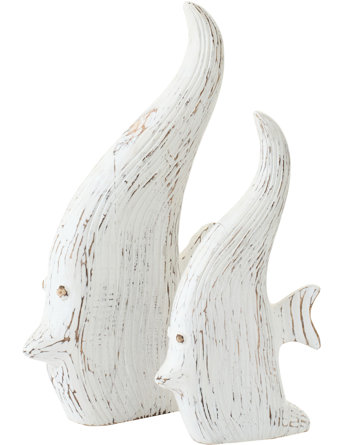 Grand Poisson déco design bord de mer H 50 cm Bois d'albasia Blanc crème Vieilli Vloei