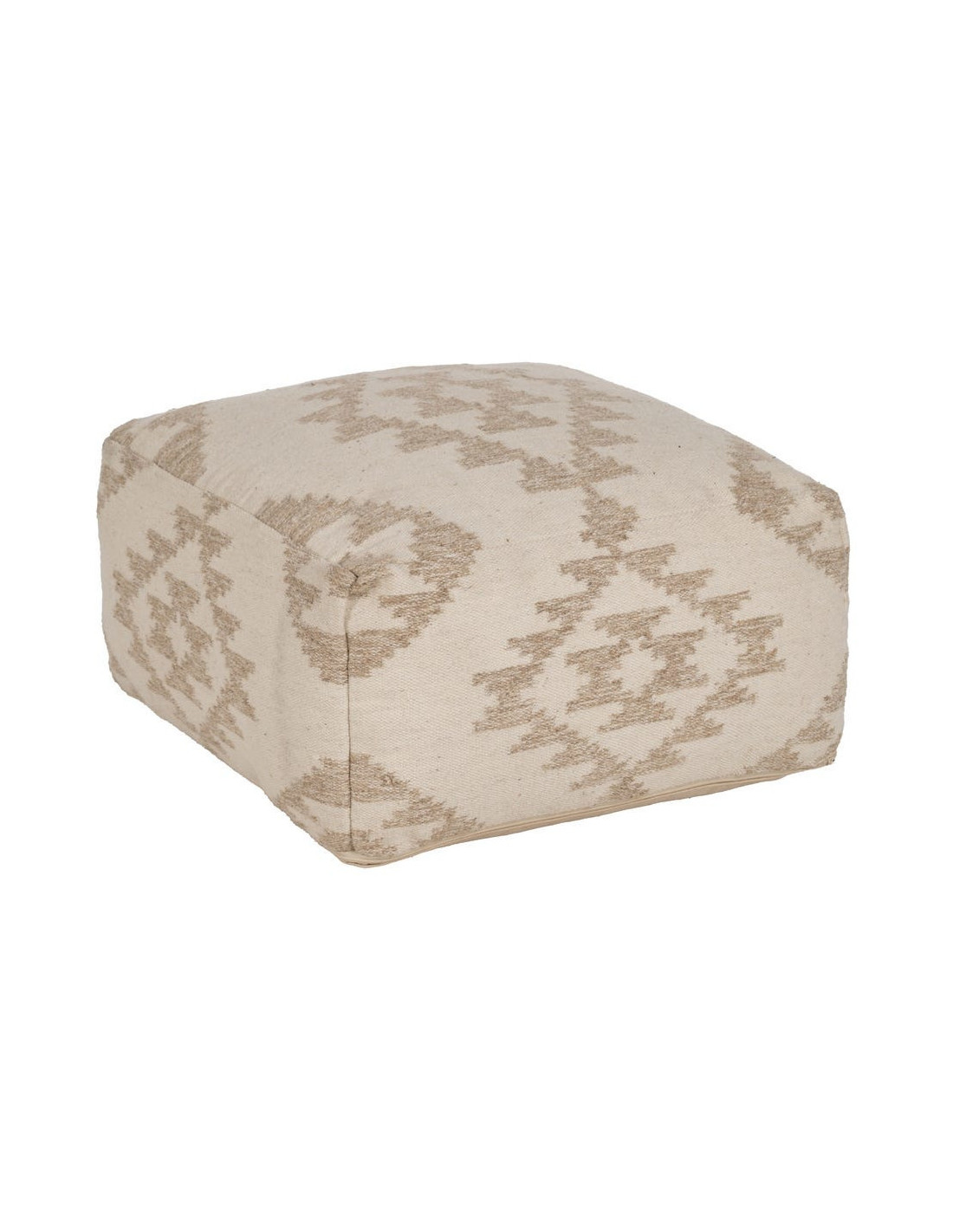 Grand Pouf ethnique chic Carré en Laine Coton Blanc Naturel Adra - 1