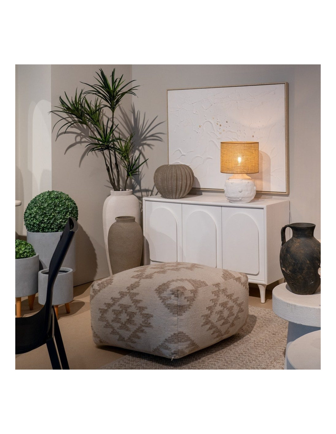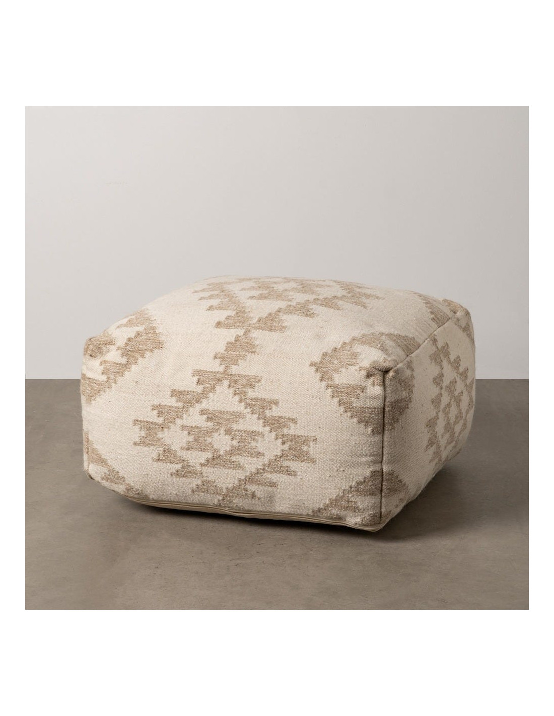 Grand Pouf ethnique chic Carré en Laine Coton Blanc Naturel Adra