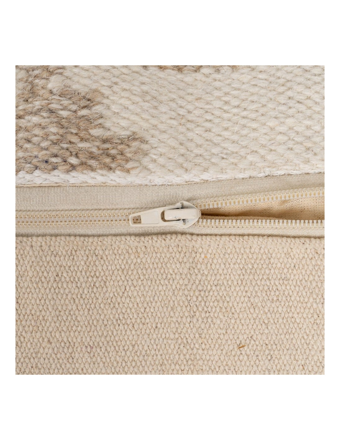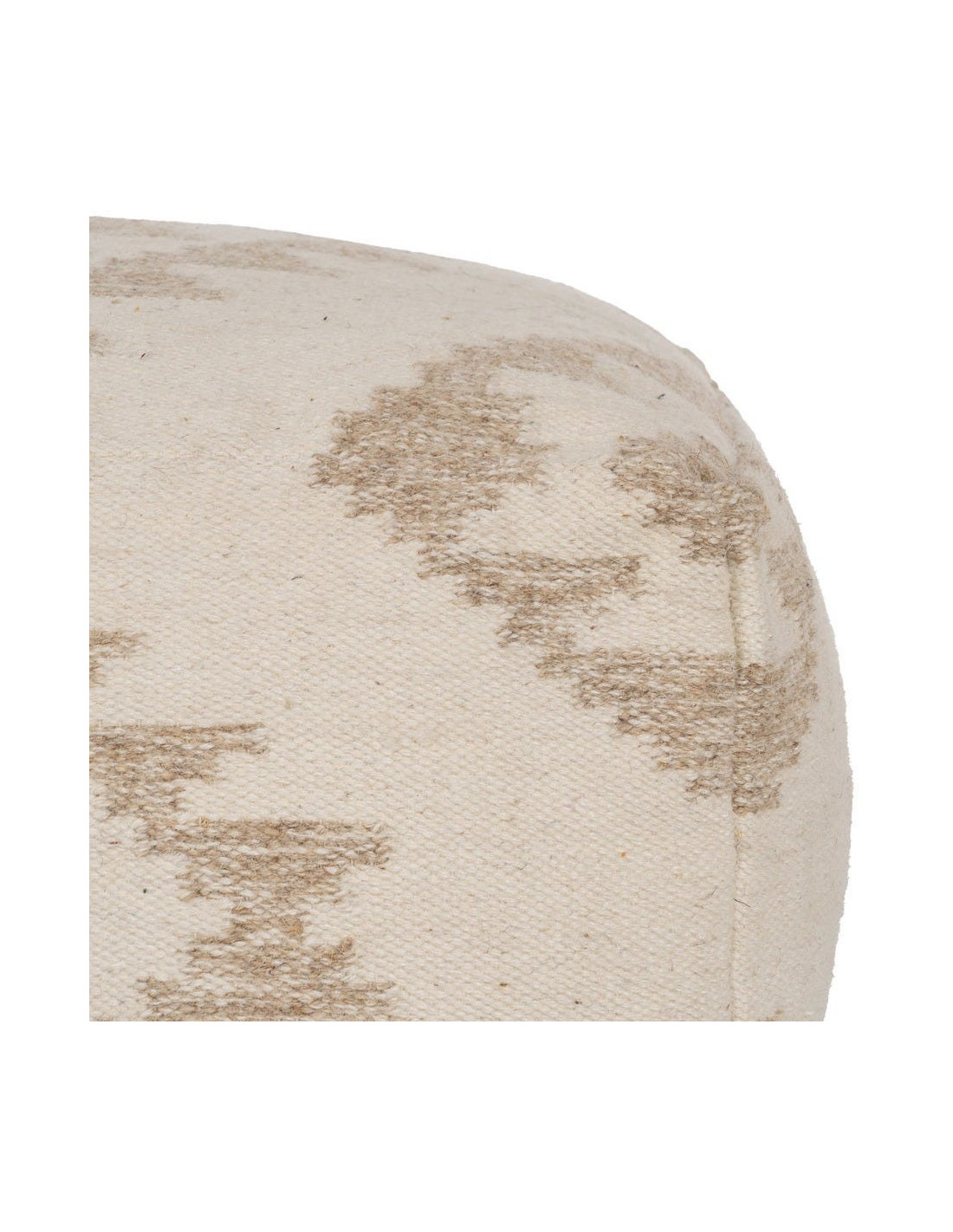 Grand Pouf ethnique chic Carré en Laine Coton Blanc Naturel Adra - 6