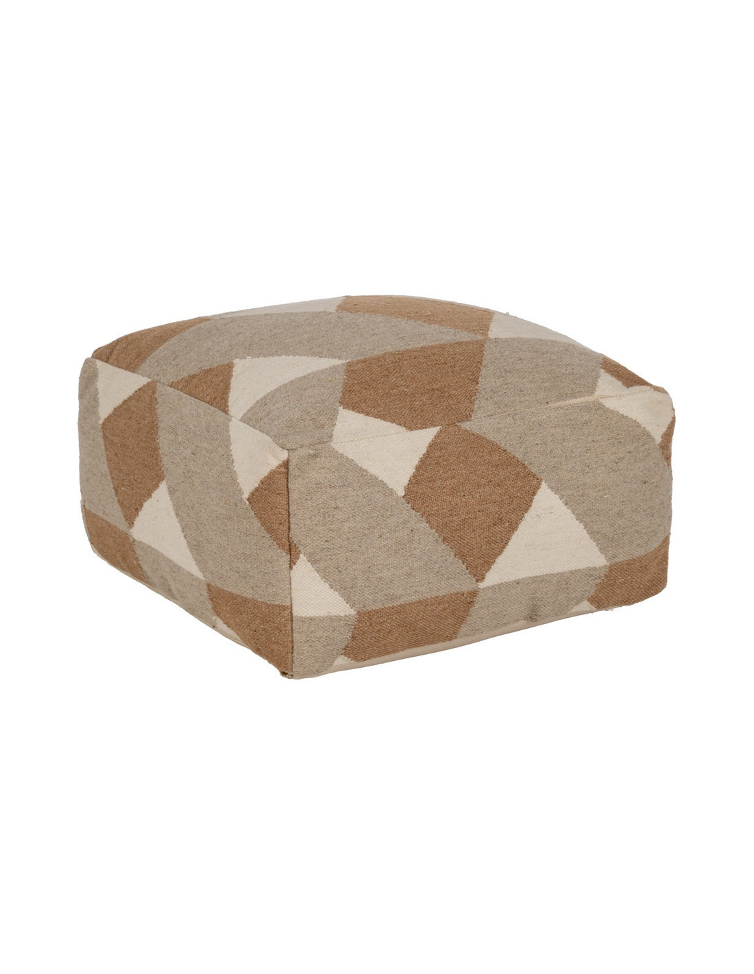 Grand Pouf ethnique chic Carré en Laine Coton Marron Blanc Motif géométrique Gata - 1