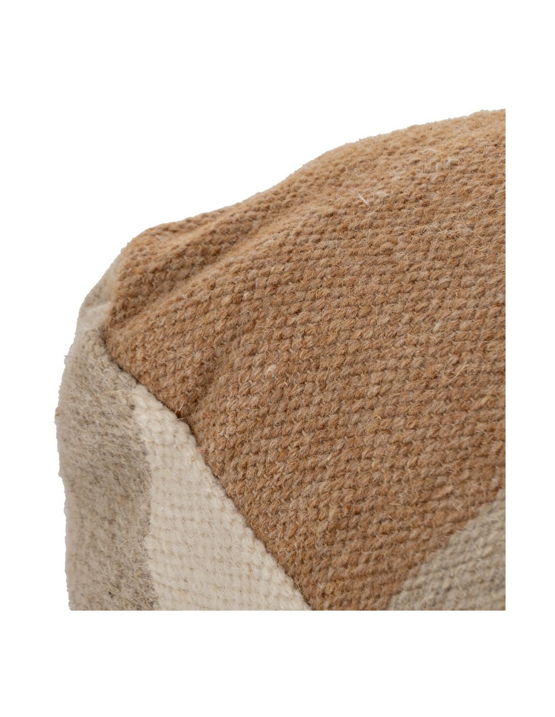 Grand Pouf ethnique chic Carré en Laine Coton Marron Blanc Motif géométrique Gata - 5