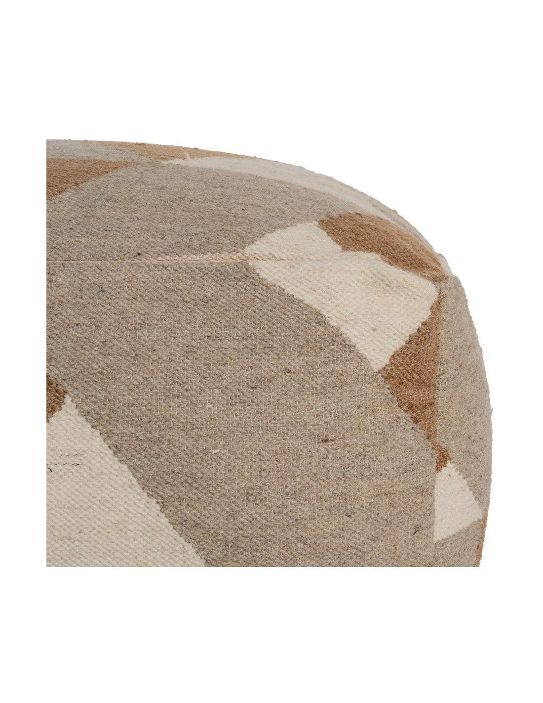 Grand Pouf ethnique chic Carré en Laine Coton Marron Blanc Motif géométrique Gata - 4