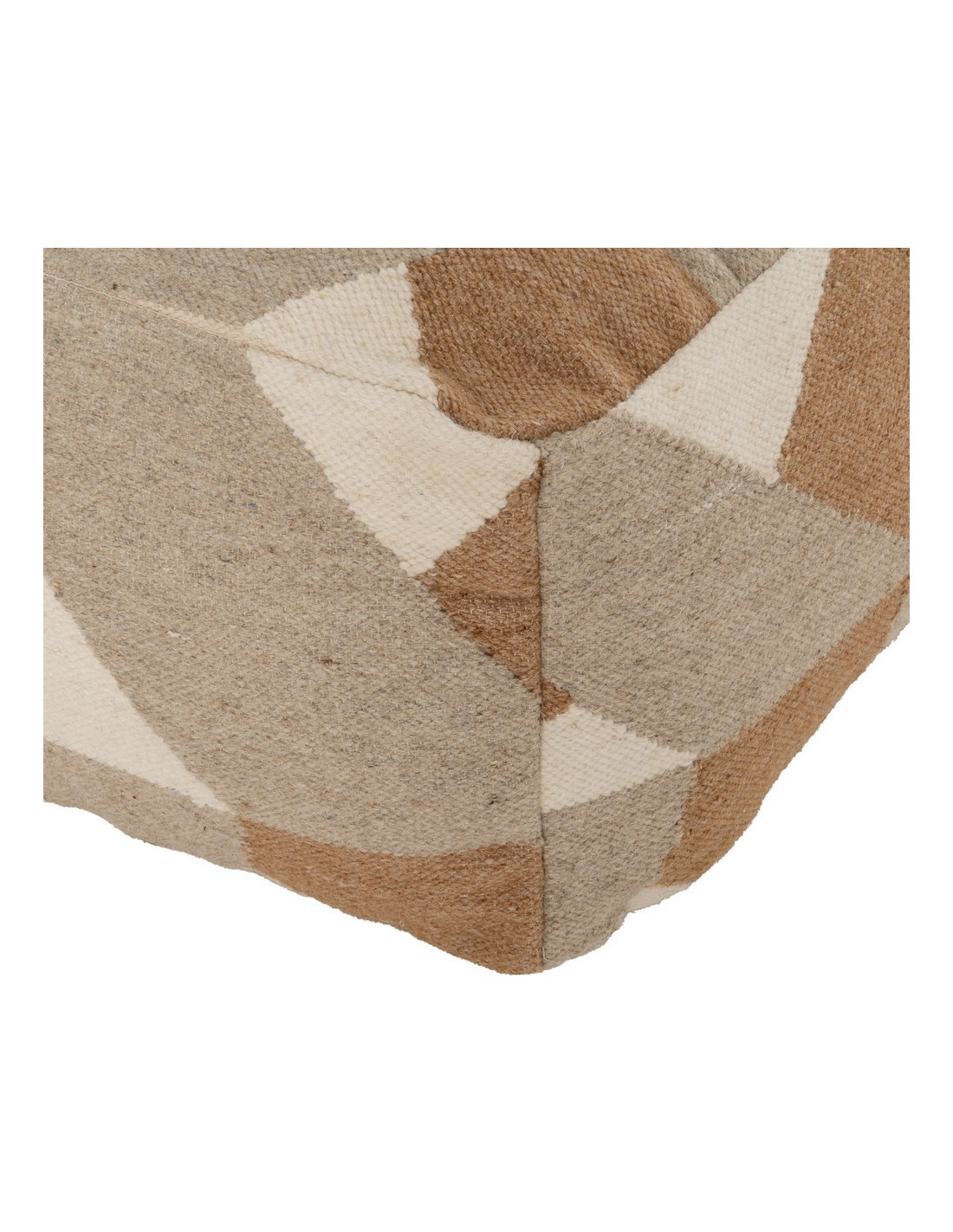 Grand Pouf ethnique chic Carré en Laine Coton Marron Blanc Motif géométrique Gata - 6