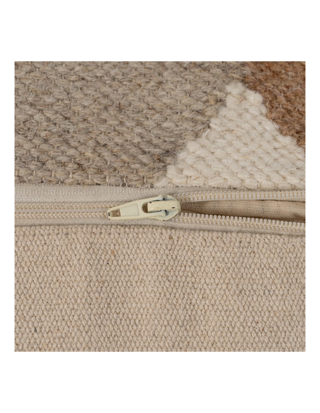 Grand Pouf ethnique chic Carré en Laine Coton Marron Blanc Motif géométrique Gata - 7