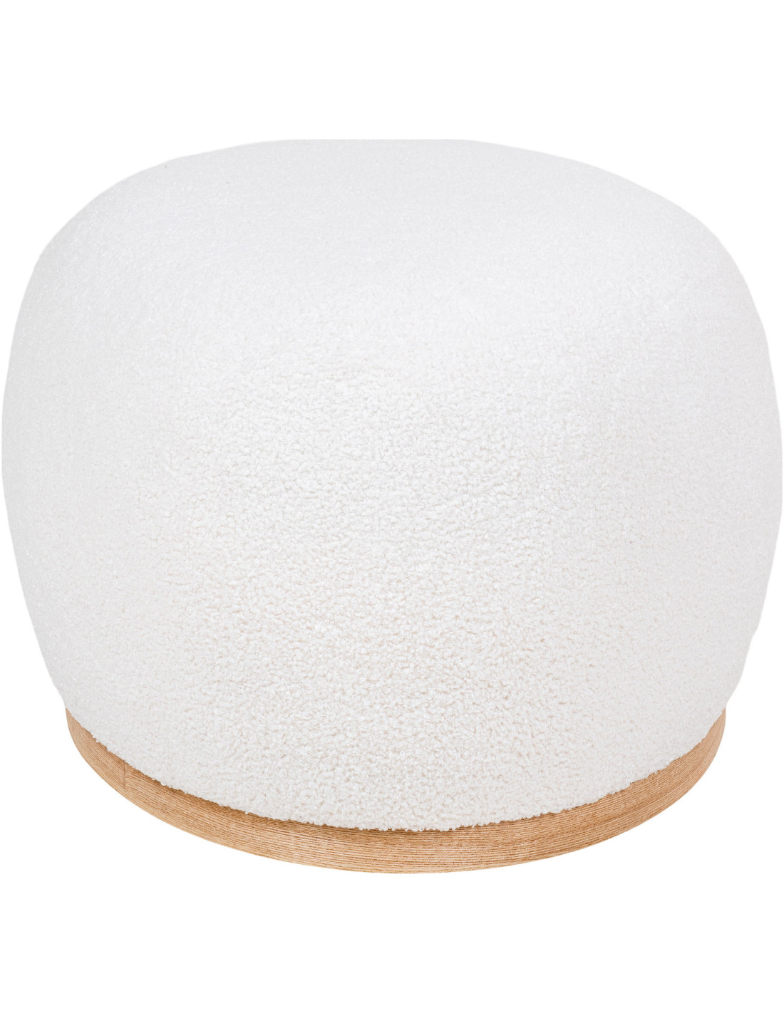 Grand Pouf moderne bouclette Ovale Tissu Blanc Bouclé Bois de pin Manhattan
