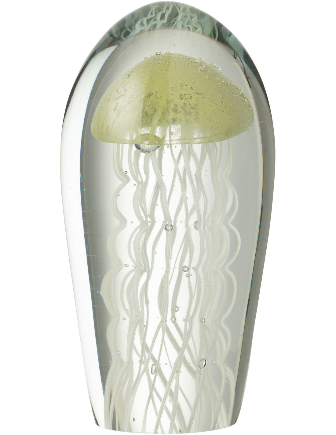 Grand Presse papier sulfure Méduse Ovale Hauteur 21 cm en Verre Transparent Vert clair Blanc Calypso