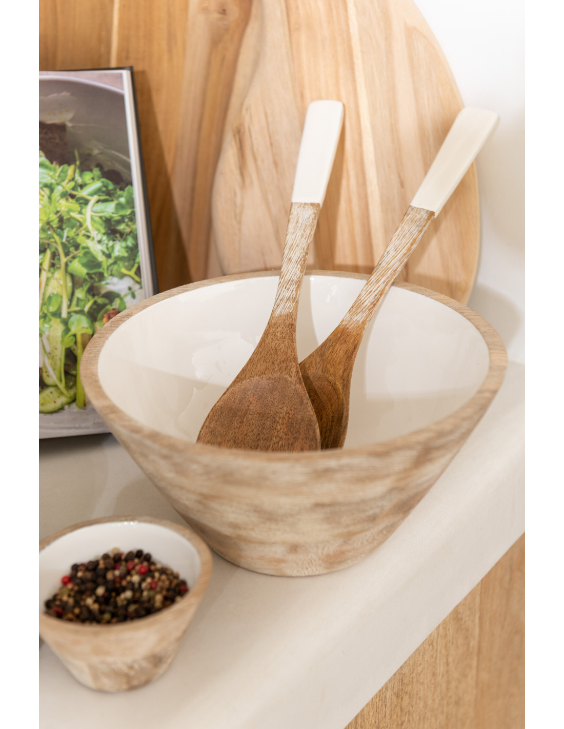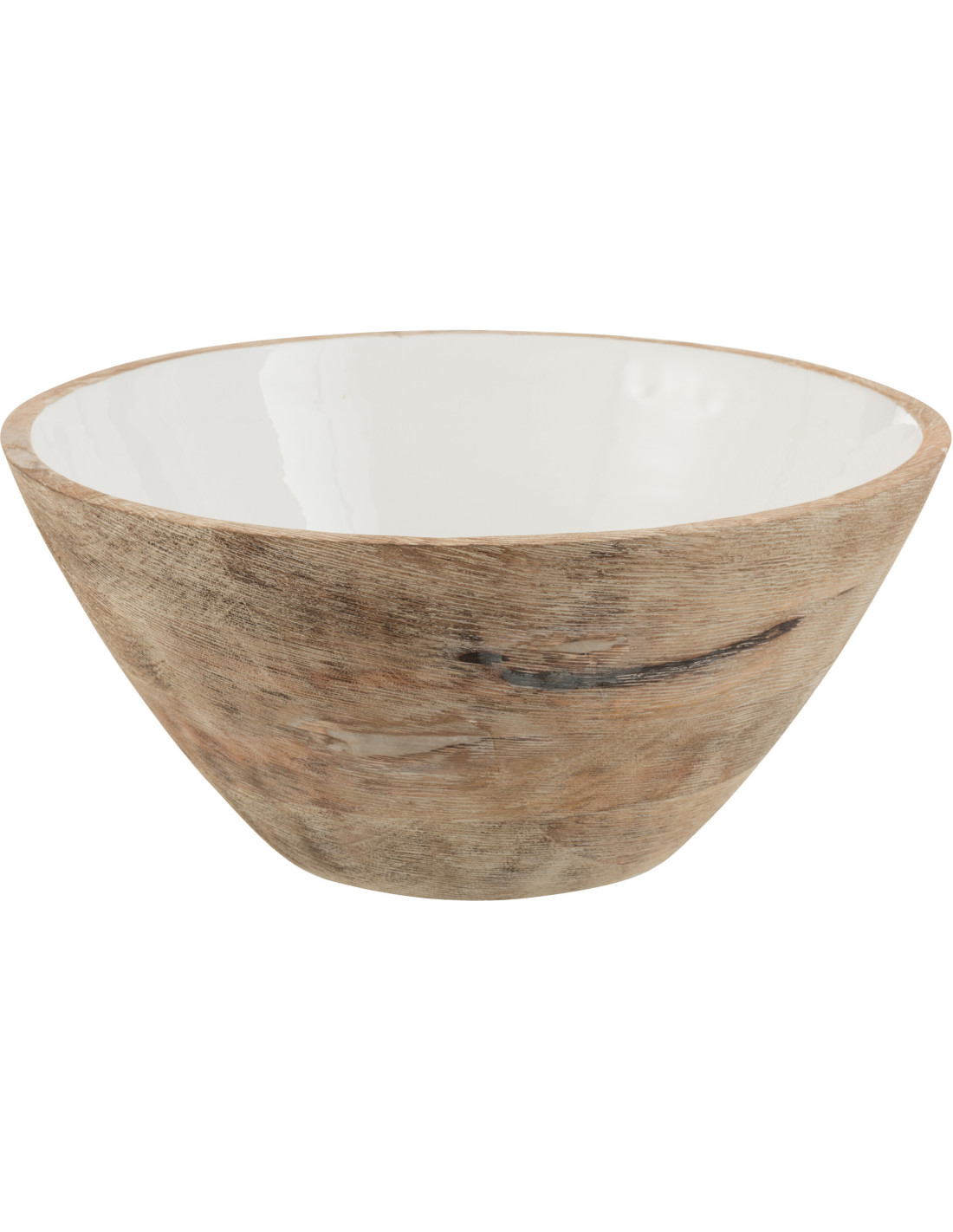 Grand Saladier moderne Rond Diamètre 30 cm en Bois de manguier Blanc Marron Vieilli Taryniss - 1