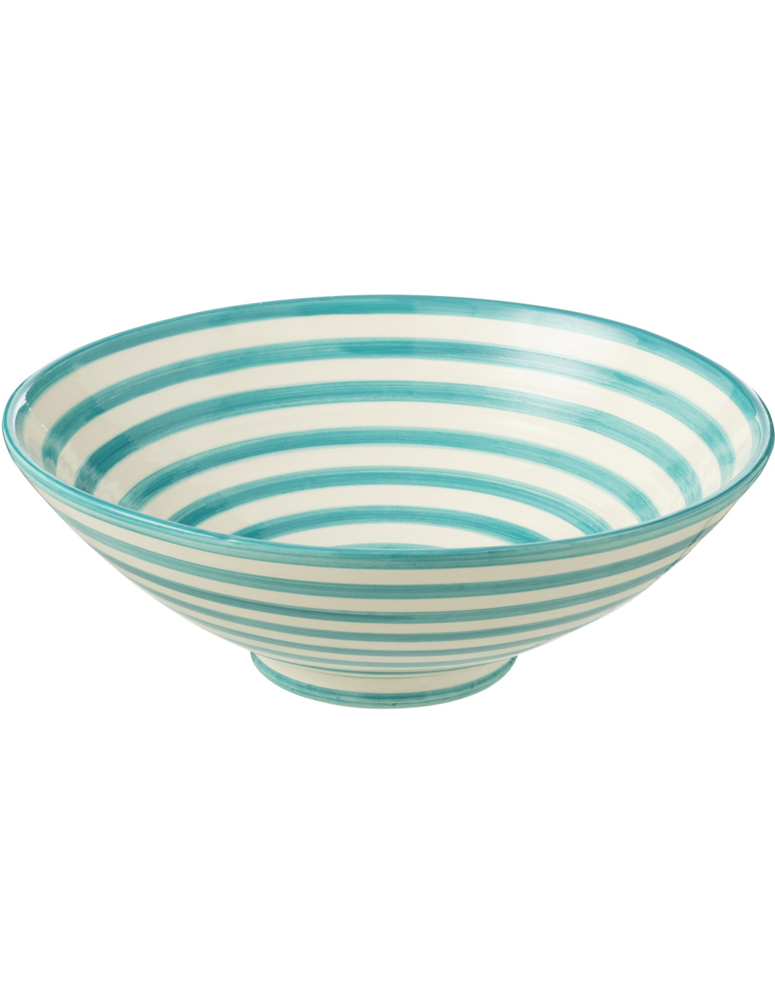 Grand Saladier rond 40 cm en Céramique Bleu aqua Blanc Motif lignes Granada - 1