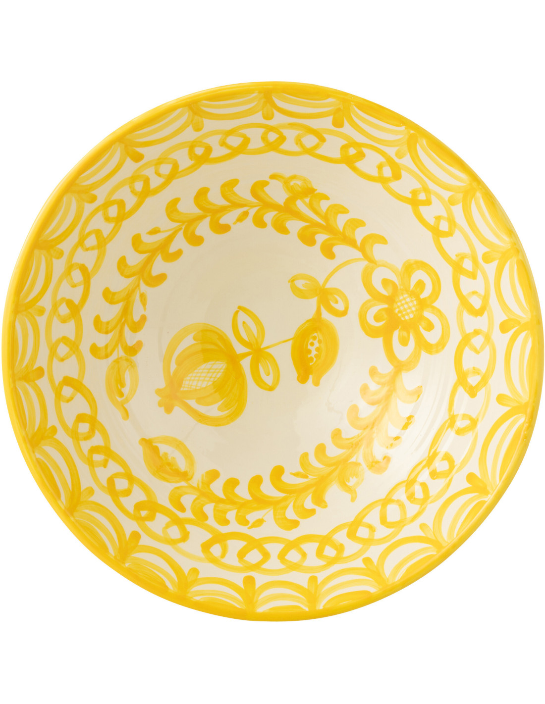 Grand Saladier rond 40 cm en Céramique Jaune Blanc Motif fleur Granada