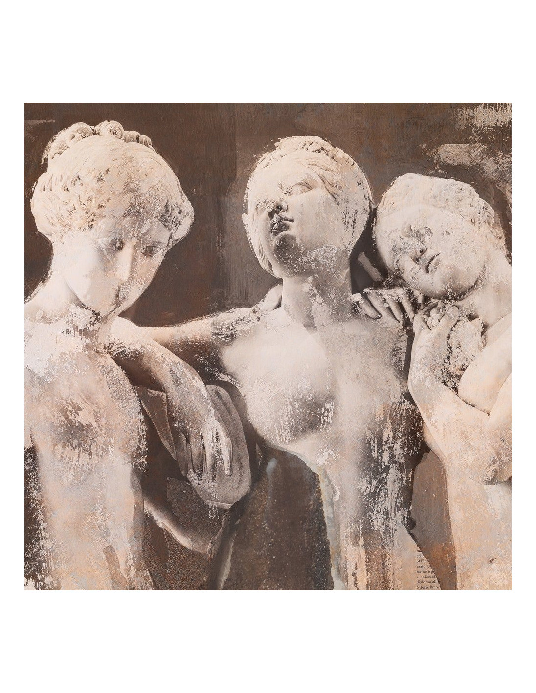 Grand Tableau mural moderne imprimé antique Les Trois Grâces Cadre PS marron effet bois 104x104 Gracias