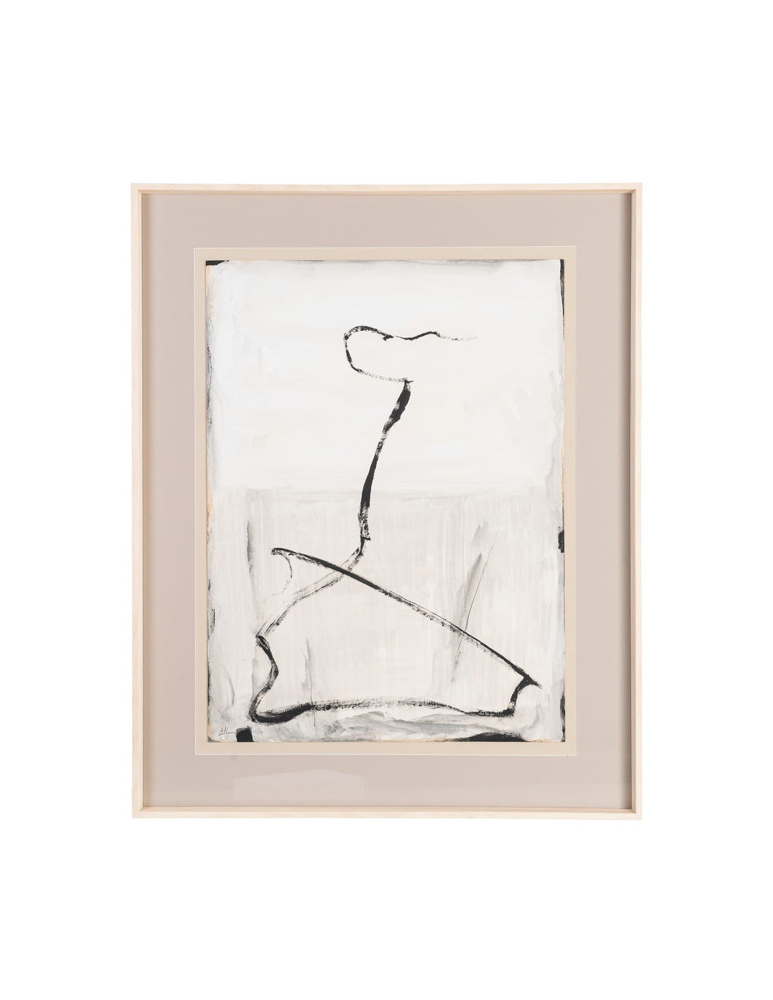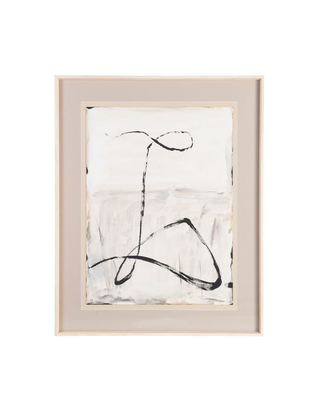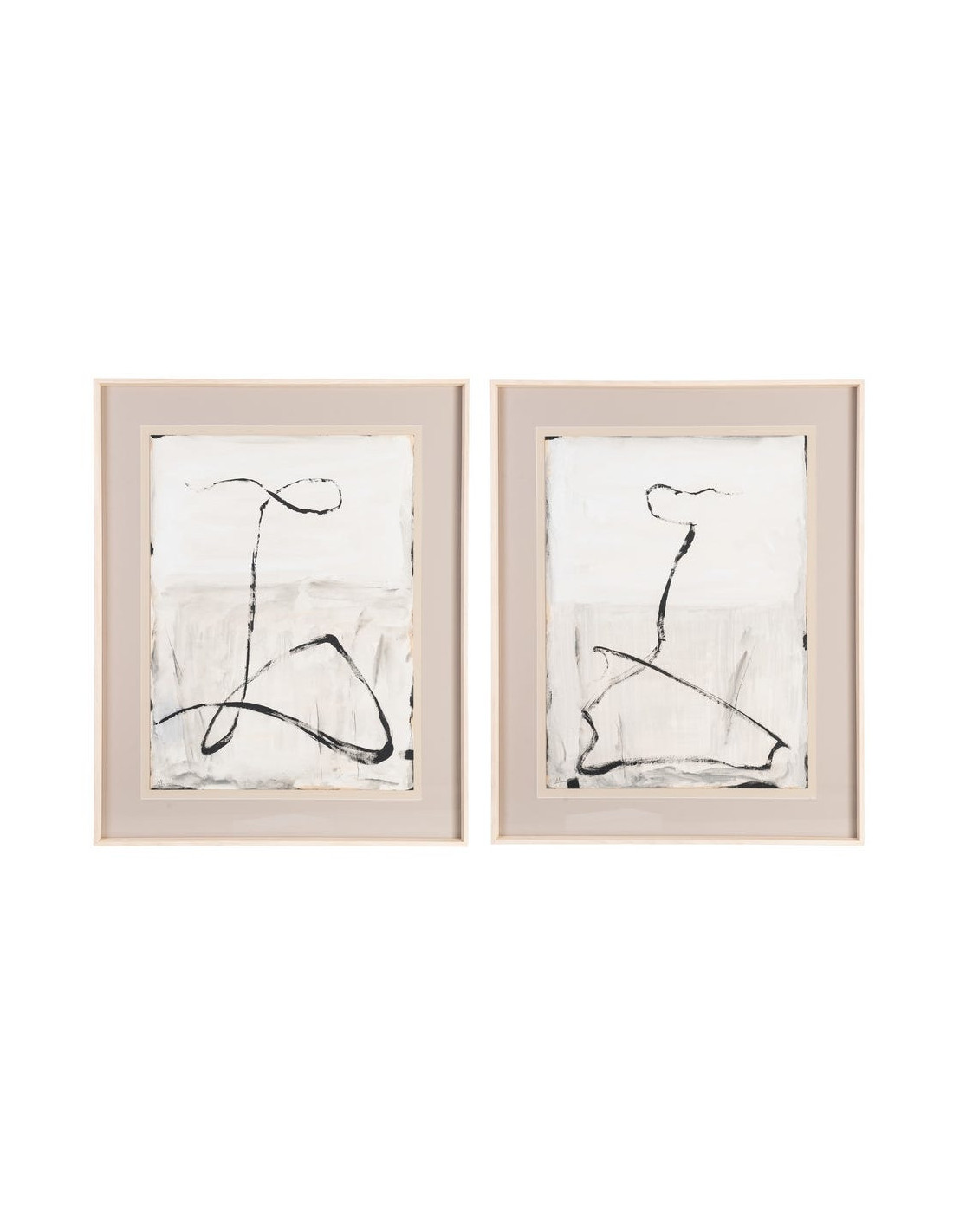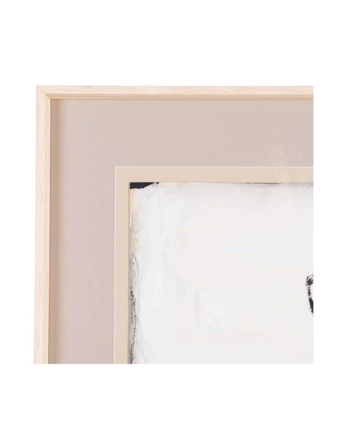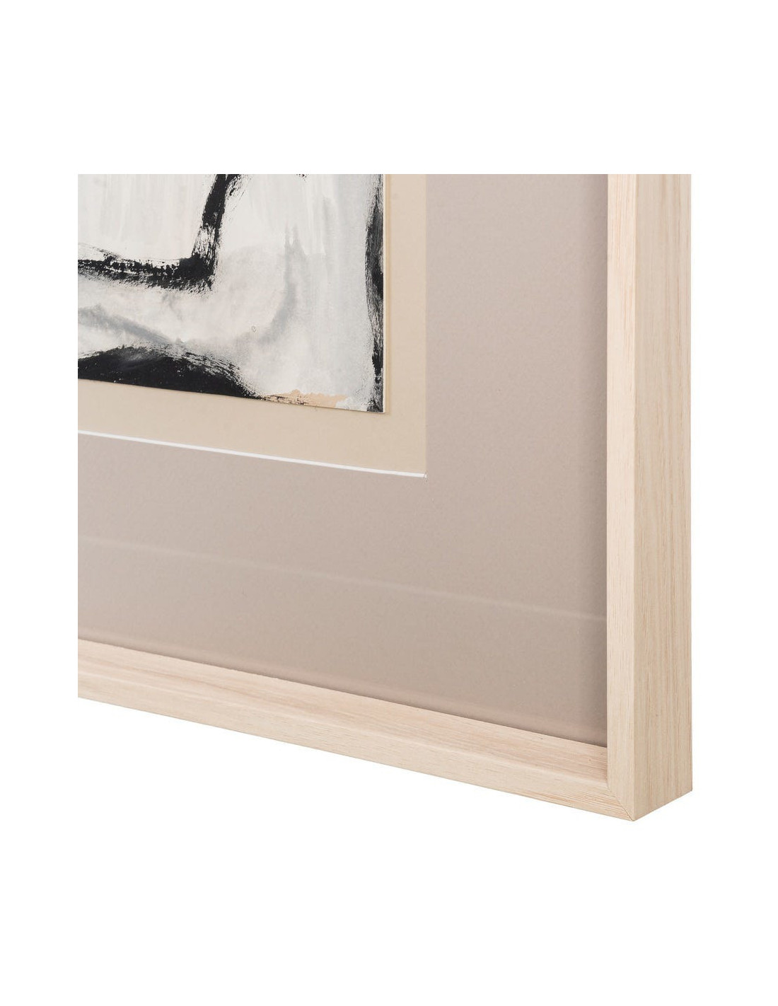 Grand Tableau mural peint sous verre abstrait Blanc Beige & Noir Cadre Bois d'ayous beige 80x100 Xiven (Lot de 2)