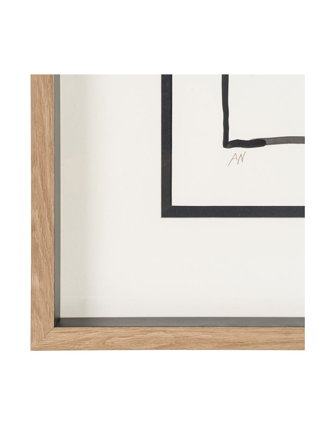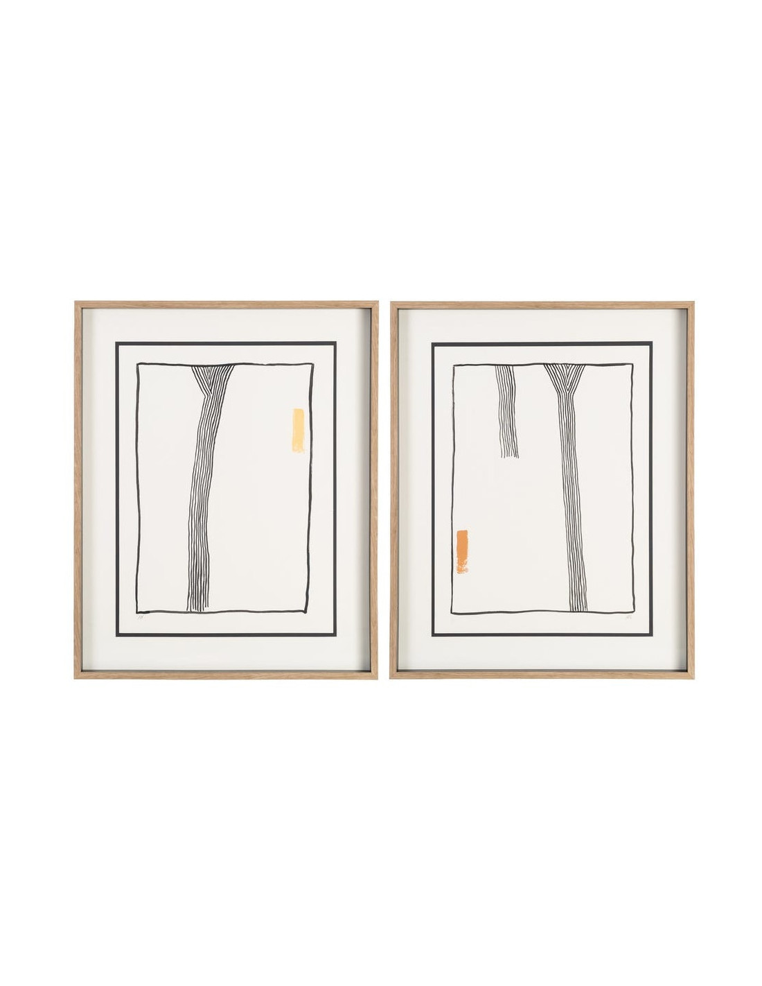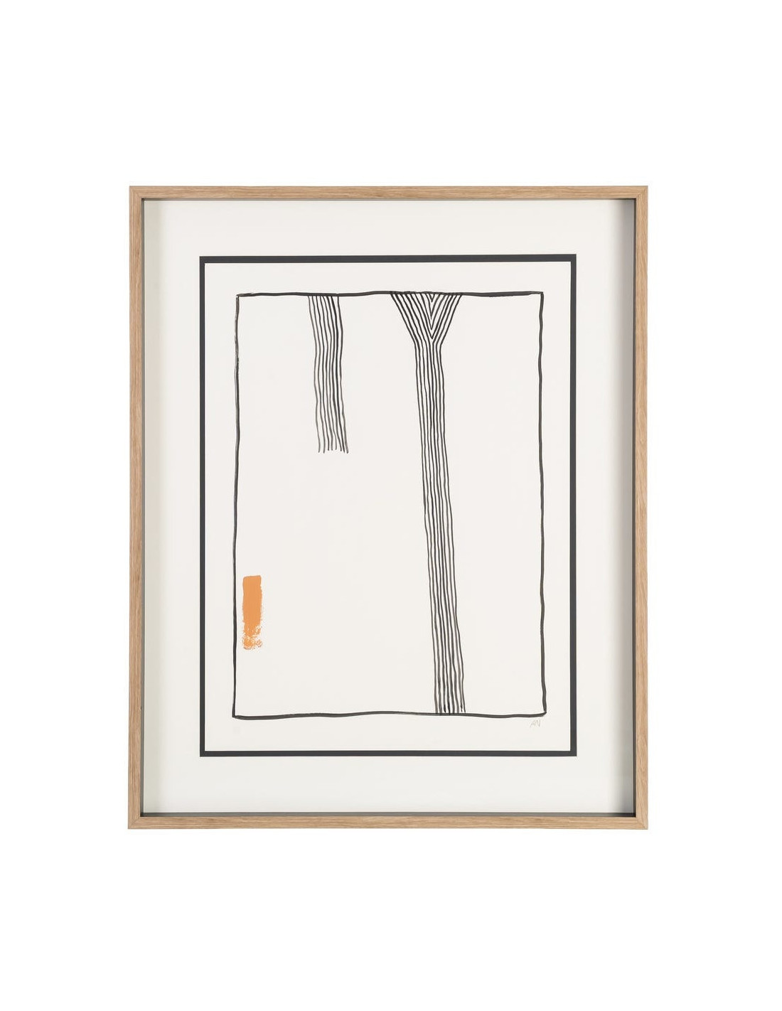 Grand Tableau mural peint sous verre abstrait Blanc Noir & Orange Cadre Bois d'ayous naturel 80x100 Savon (Lot de 2)